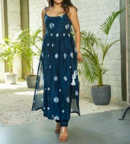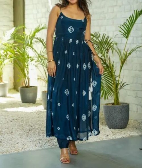 Exquisite Blue Chinon kurti that displays elegance and traditional craftsmanship with a touch of modern style.