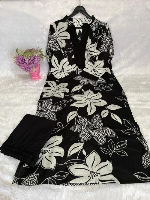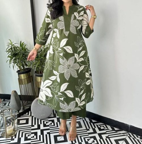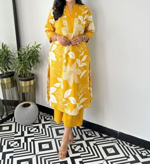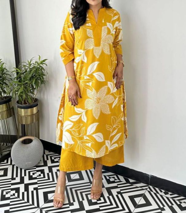 Beautiful flowers Printed Cotton Kurta paired with Plain Palazzo to make you feel fresh all day.