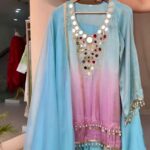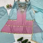 Kurti (Top): Printed Crape Silk with handcrafted mirror & thread embroidery, soft micro lining for comfort.