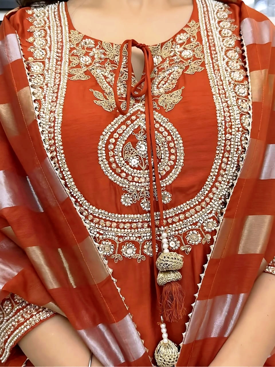 Dupatta Fabric:ย 2.2 meters Heavy Jacquard Dupatta