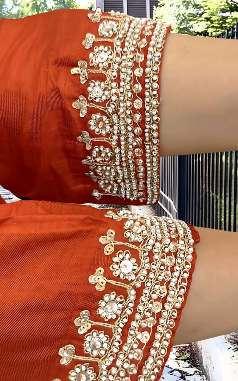Top Fabric:ย Pure Viscose Chanderi with Sequin Cording Embroidery
