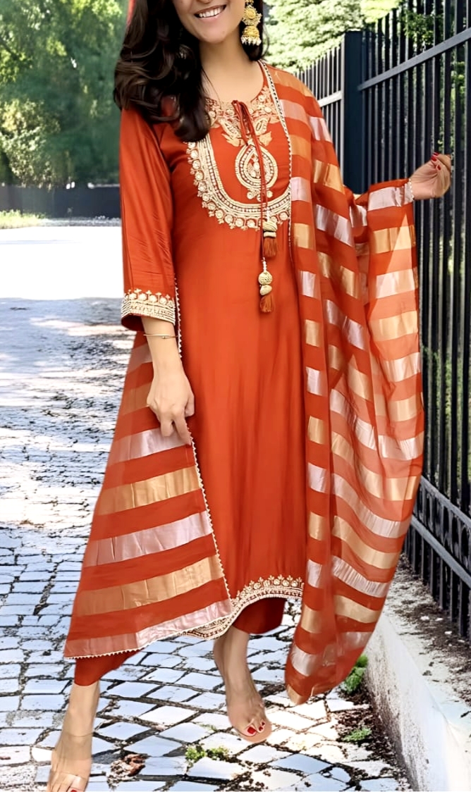 Chanderi Silk Embroidered Kurta Set
