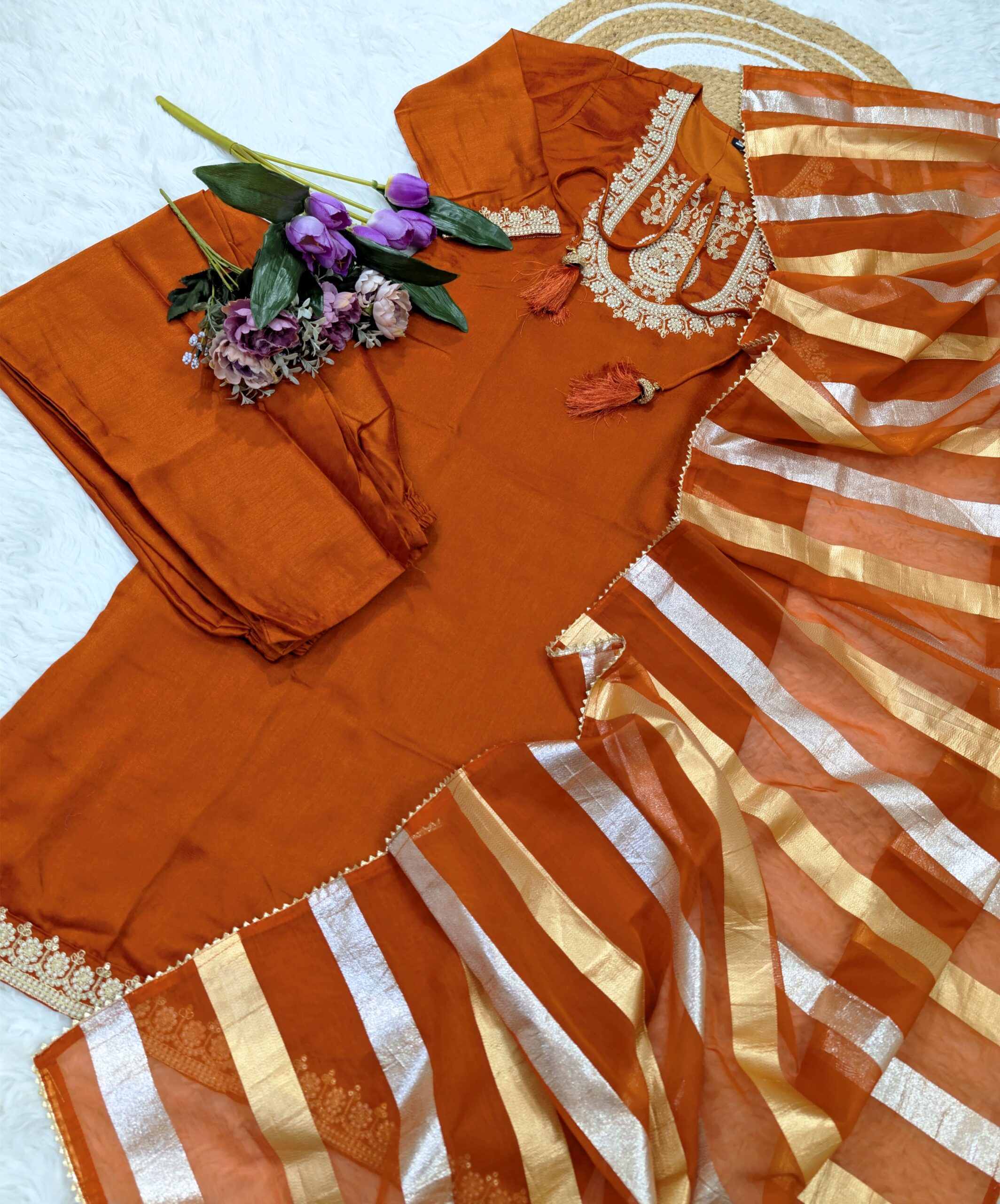 Elevate your ethnic wardrobe with this elegant Chanderi kurta set, crafted in premium viscose fabric with delicate sequin embroidery.
