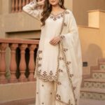 Turn every moment into a runway with this Crafted in luxurious fabrics and adorned with heavy embroidery & shimmering sequence work, this outfit is all about elegance with a bold glam touch.