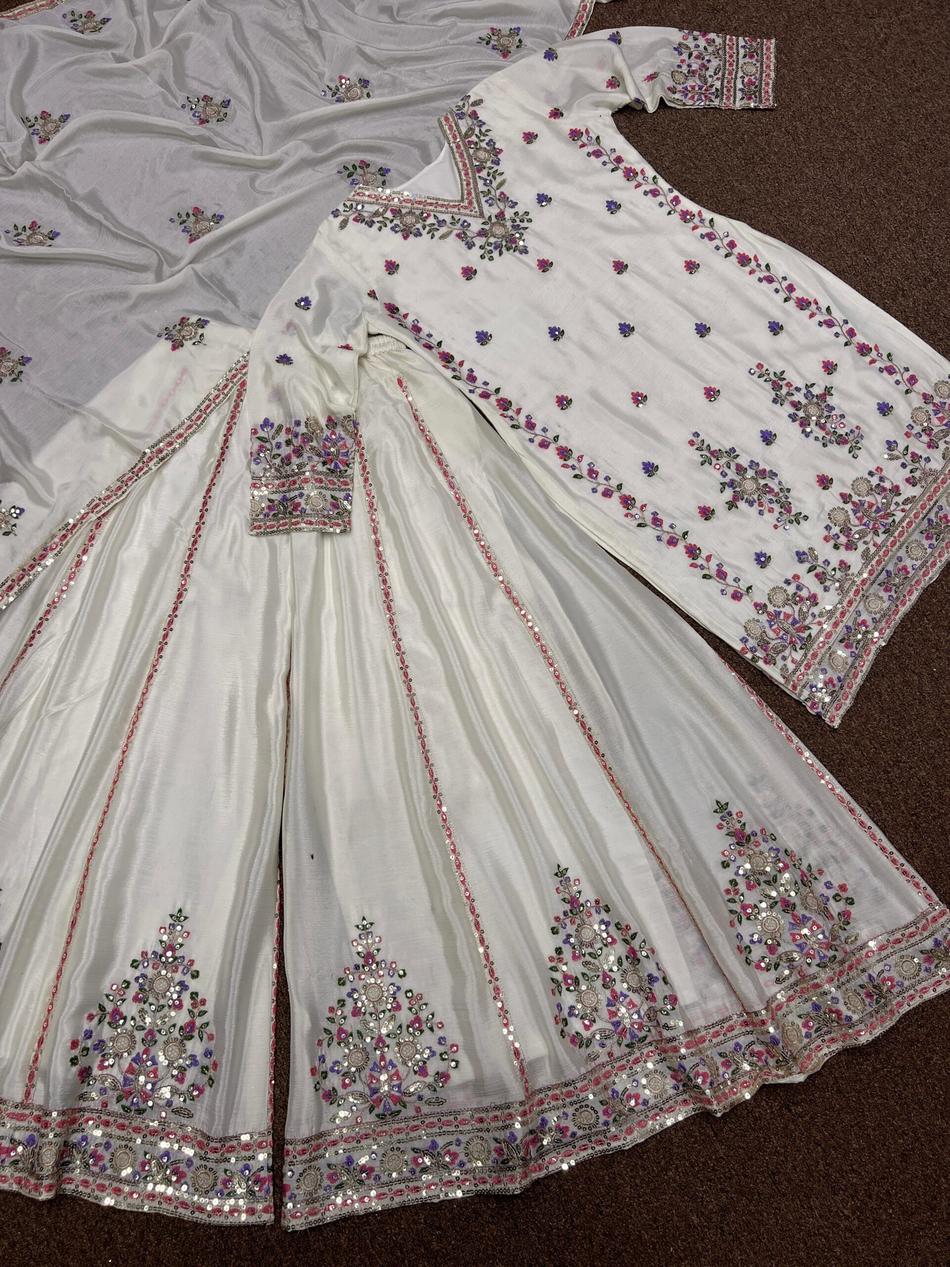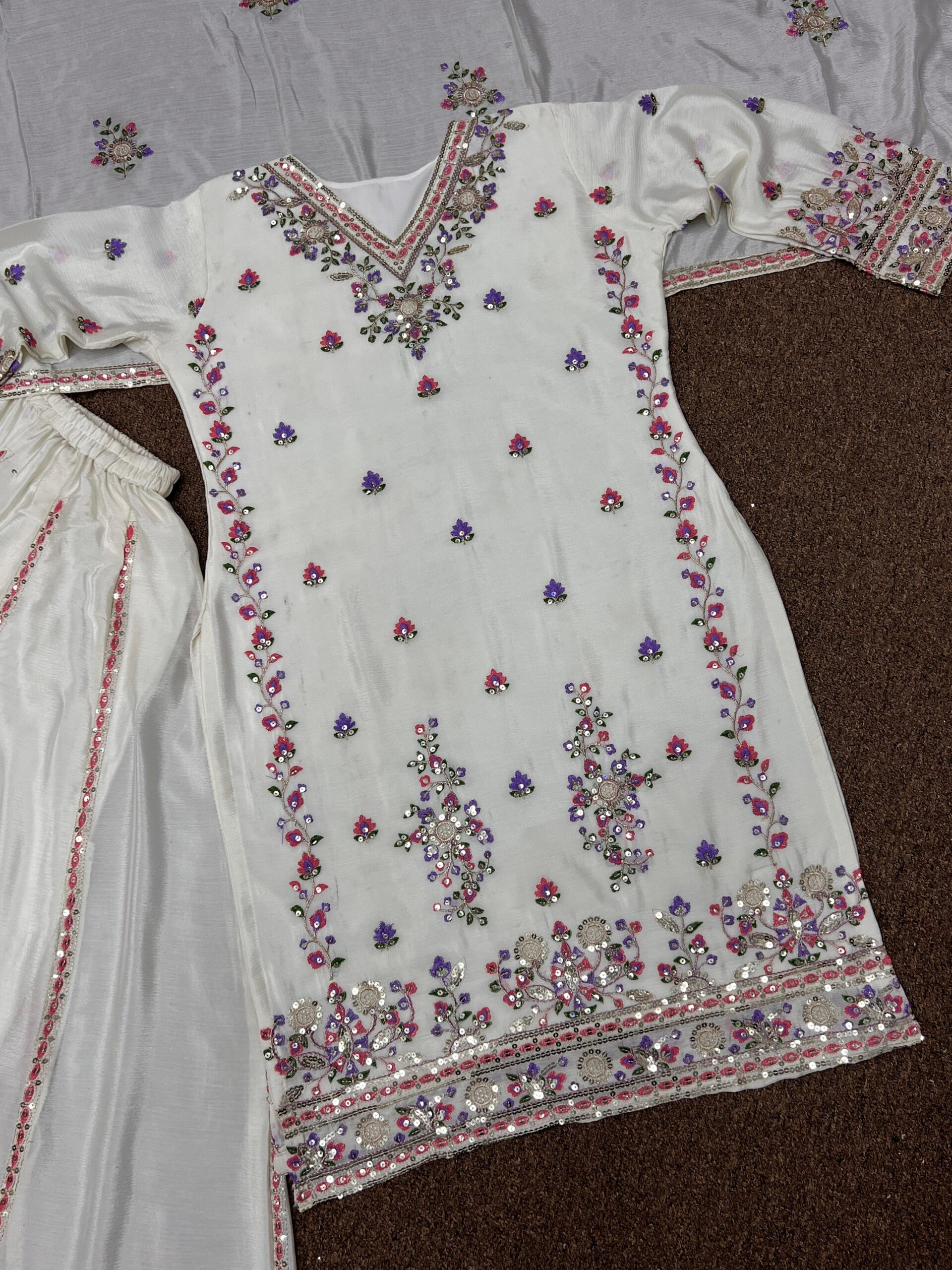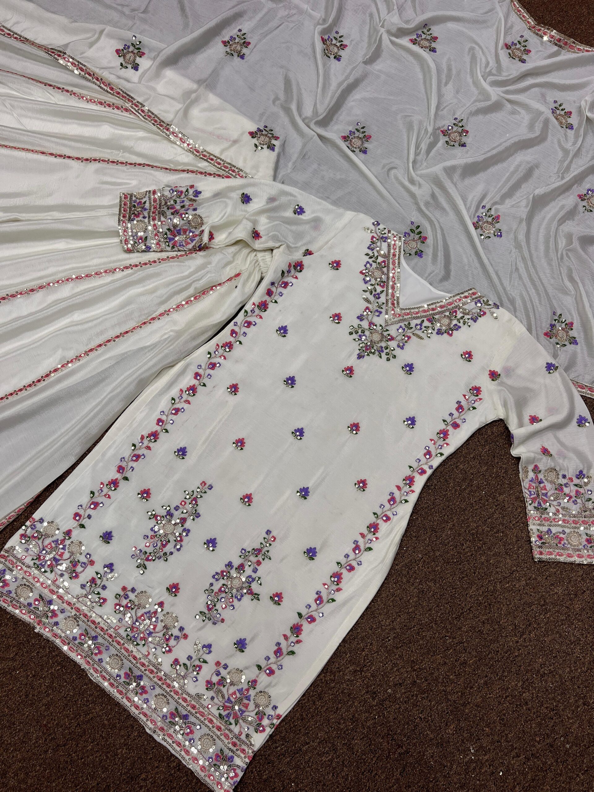 Turn every moment into a fashion statement with this luxurious embroidered Chinon silk ensemble.