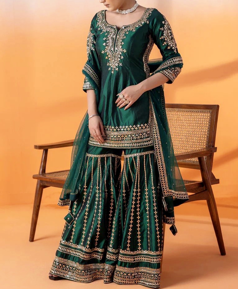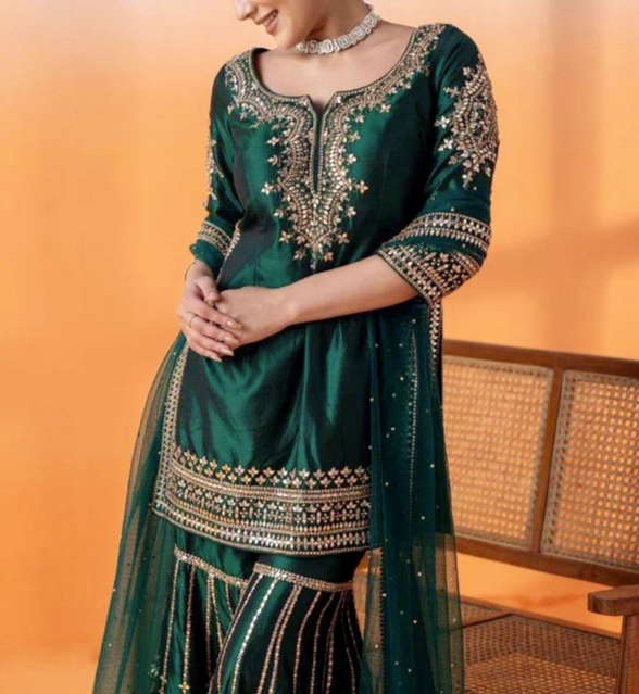 Introducing a beautifully curated Top, Plazzo & Dupatta Set, adorned with intricate heavy embroidery and delicate sequence work, designed to elevate your ethnic wardrobe with timeless grace.