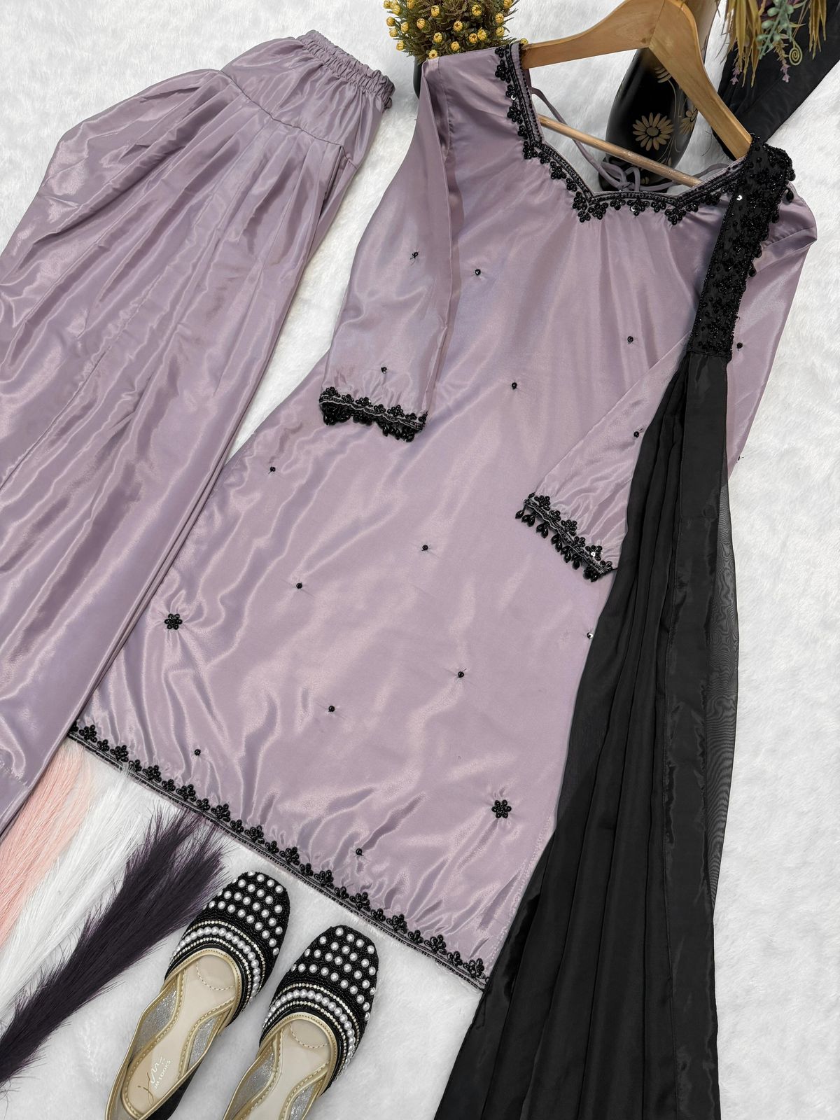 Exclusive 3-Piece Georgette Suit Set with Real Mirror Work