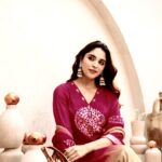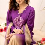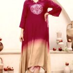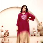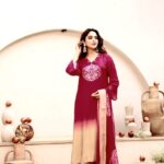 The neckline is enhanced with delicate thread detailing and subtle embellishmentsโ€”perfect for a refined festive look.