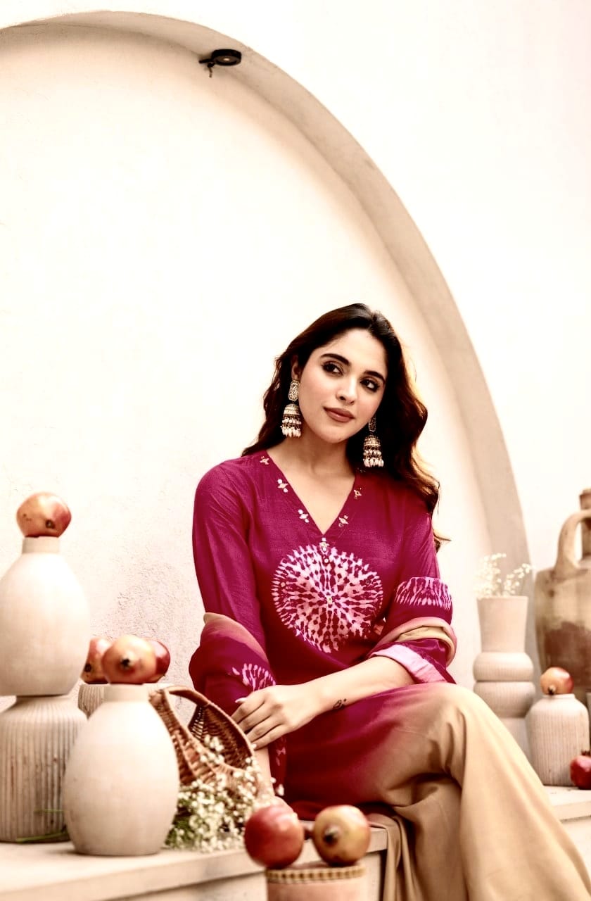 Paired with soft cotton pants and a lightweight cotton malmal dupatta adorned with coordinated prints, this ensemble brings together comfort, style, and sophistication.