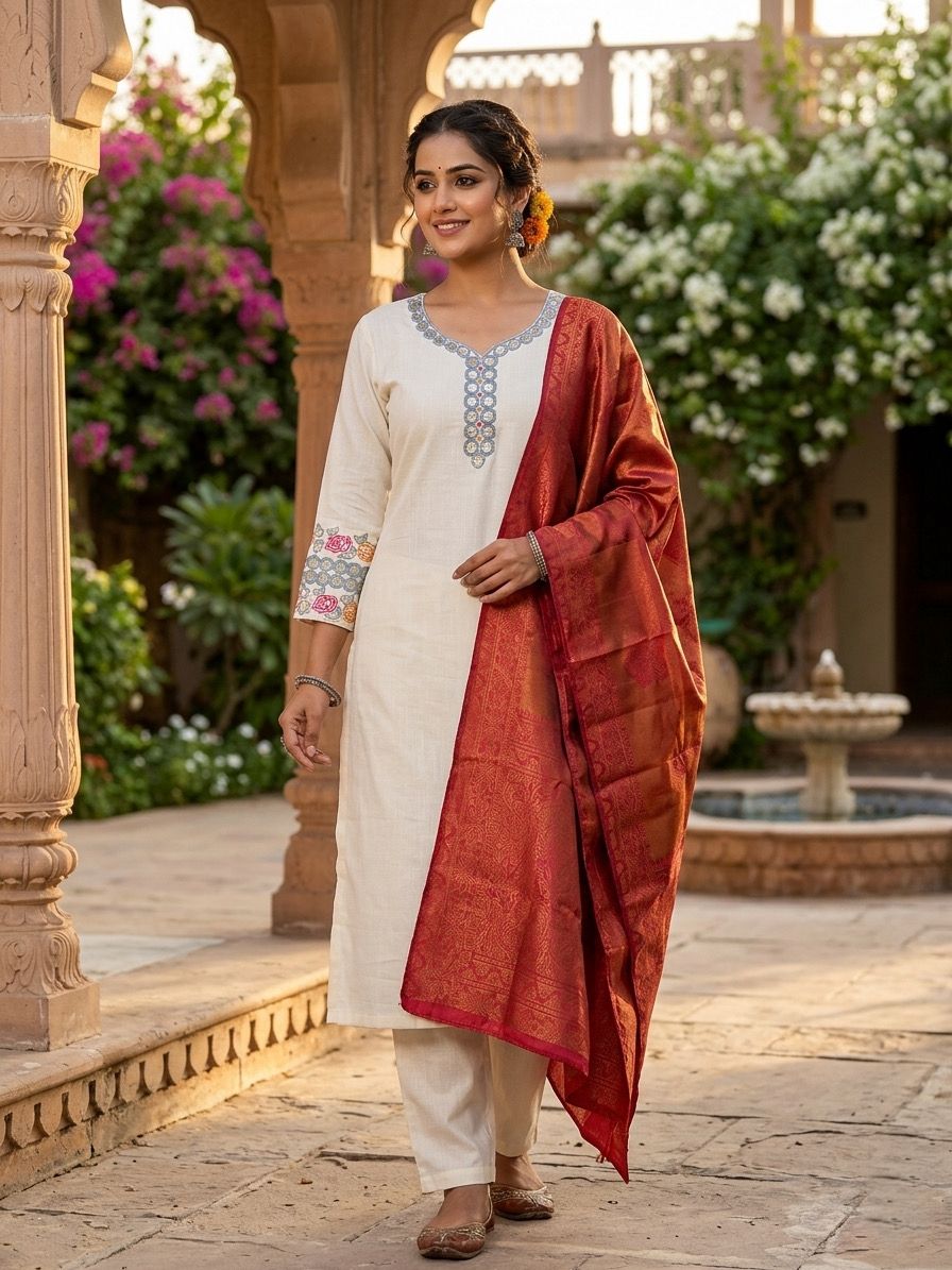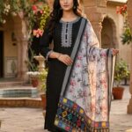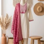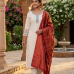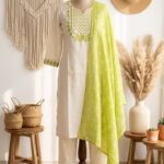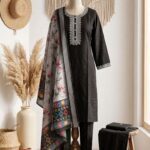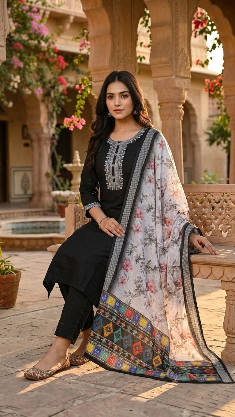 Featuring a straight-cut kurta with graceful embroidery paired with a vibrant printed dupatta that adds a unique and elegant touch.
