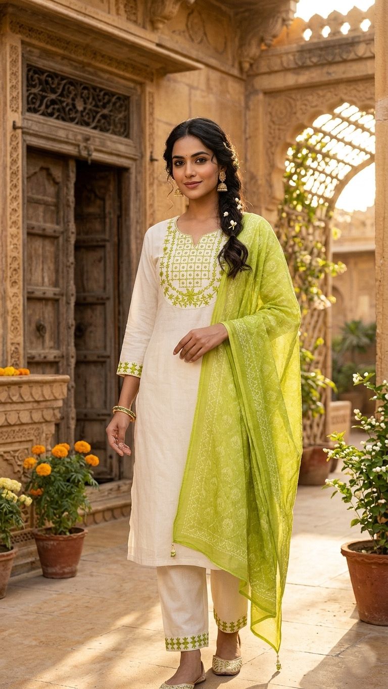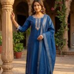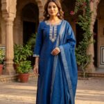 Upgrade your summer wardrobe with this beautiful classic three-piece ethnic suit set designed for comfort and style.