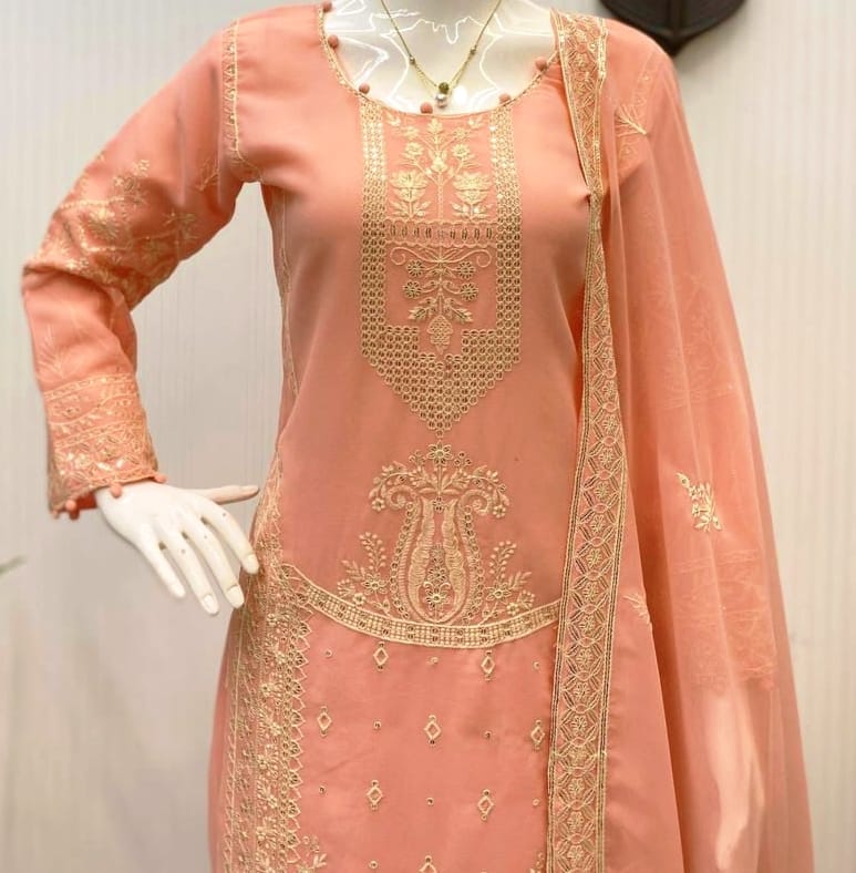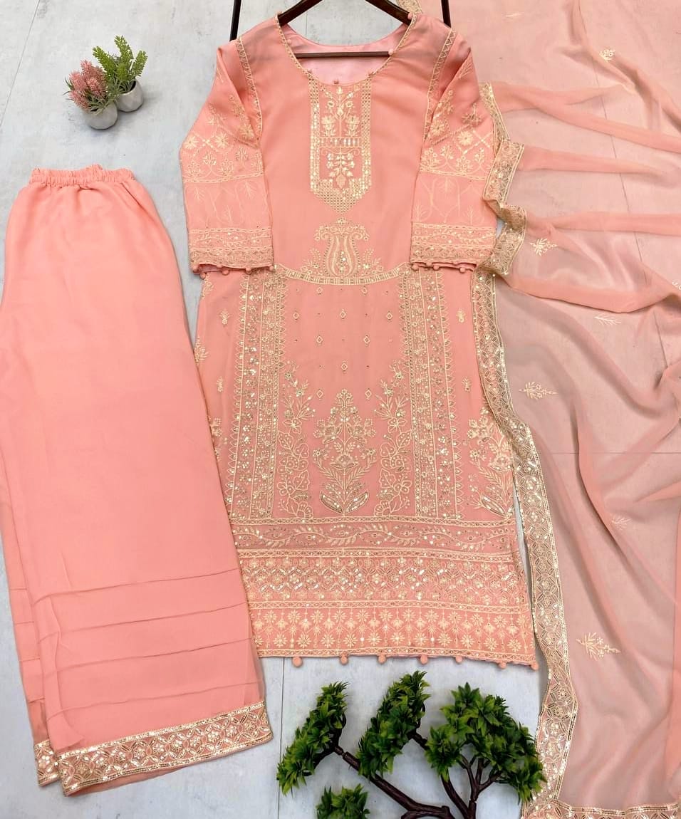 Elegant 3 Piece Georgette Palazzo Set with Dupatta