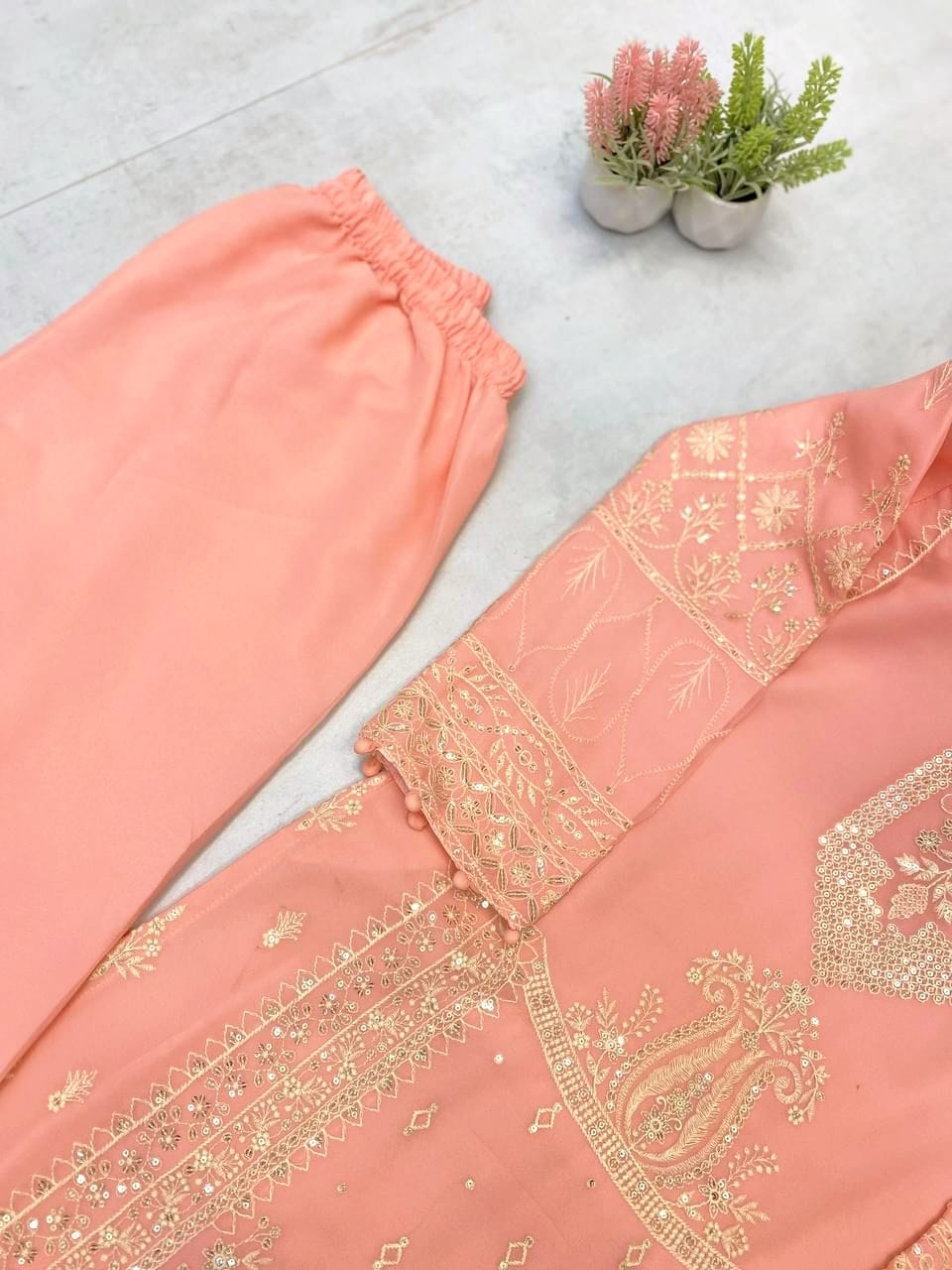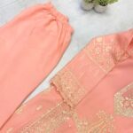 Palazzo: Embroidered georgette with pleated bottom (length 40 inches)