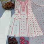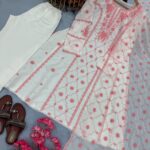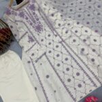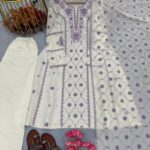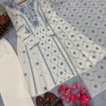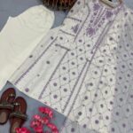 Top made from Premium Roman Silk. A-Line with sleeves. Heavy Embroidery with delicate Lace Border for a graceful finish.