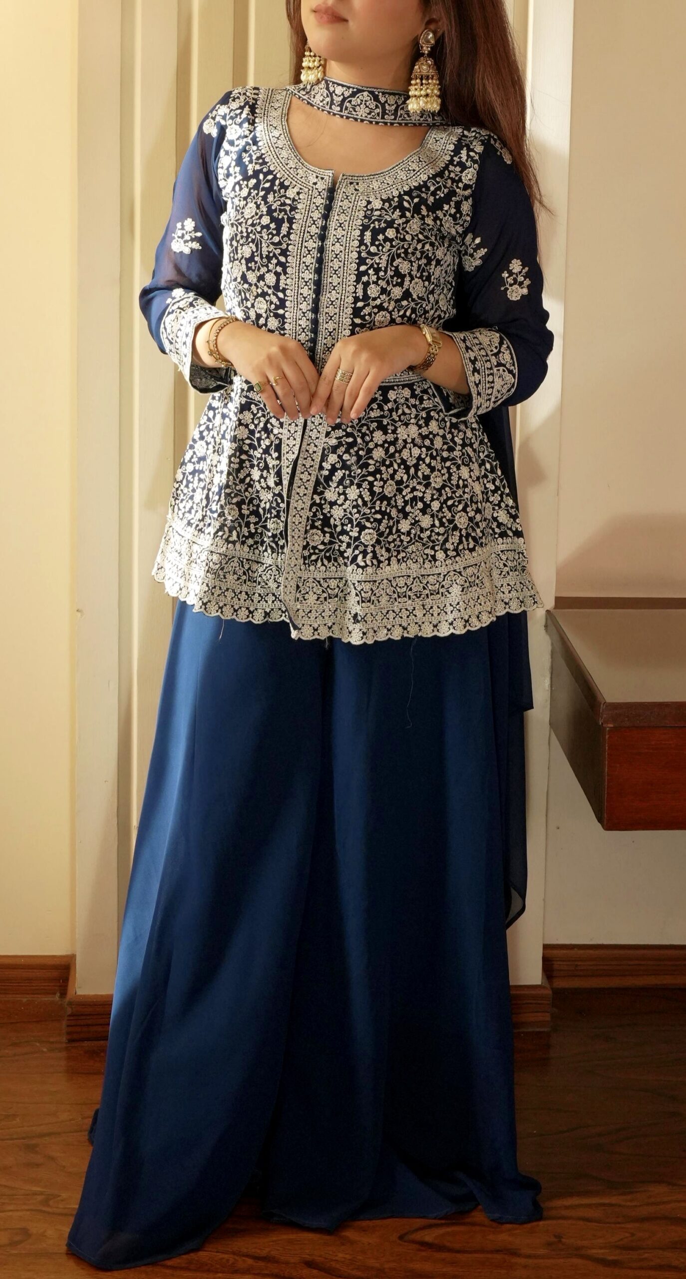 Embroidered Peplum Top-Palazzo-Dupatta