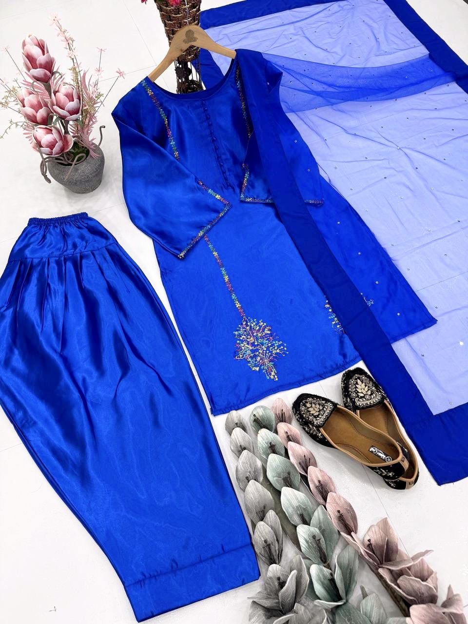 Blue Chinon Suit – Exclusive 3 Piece Set