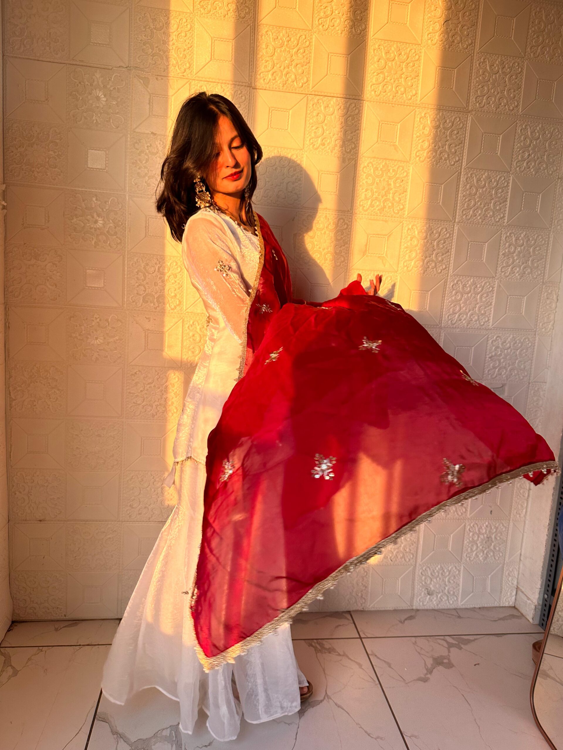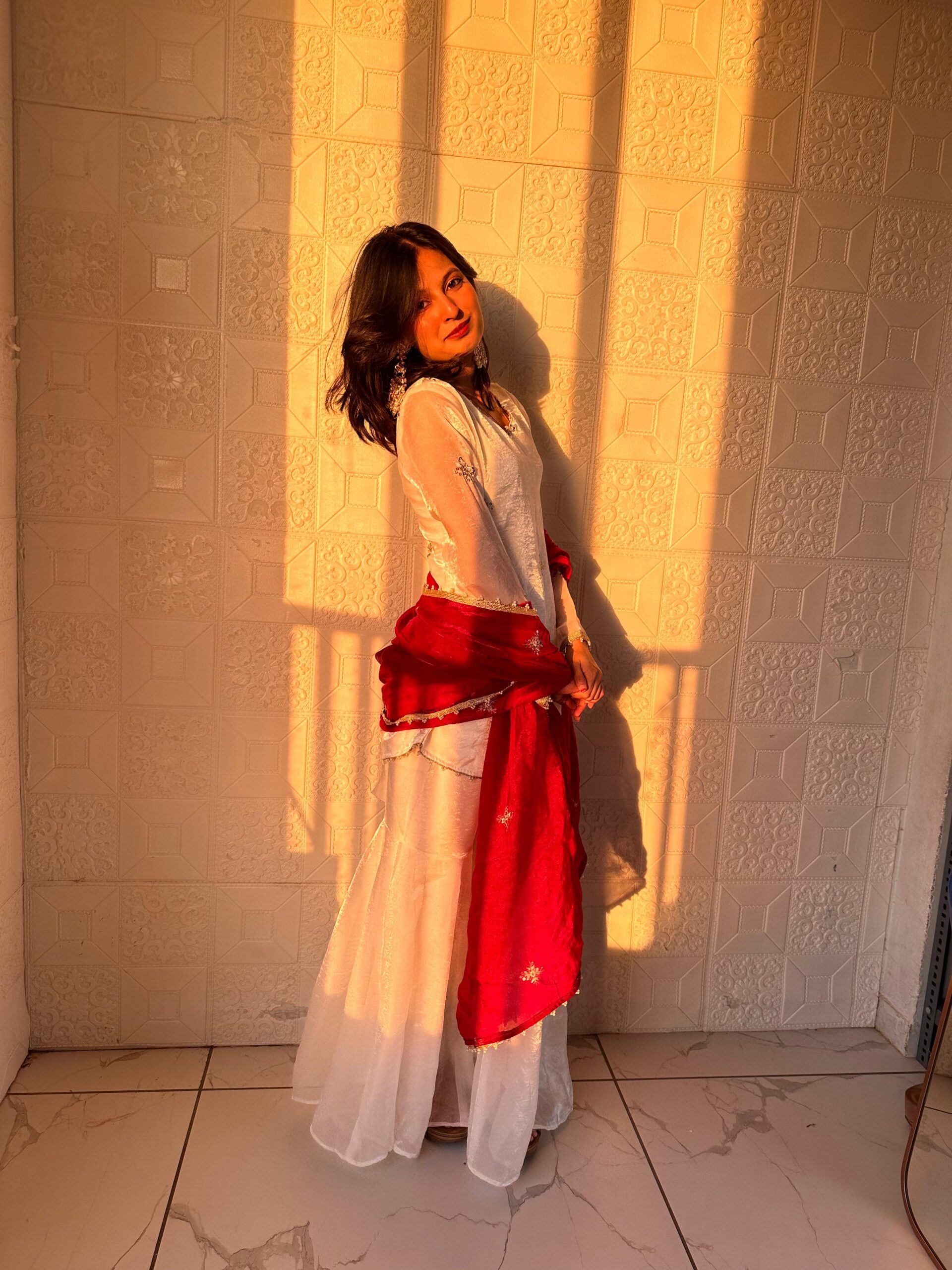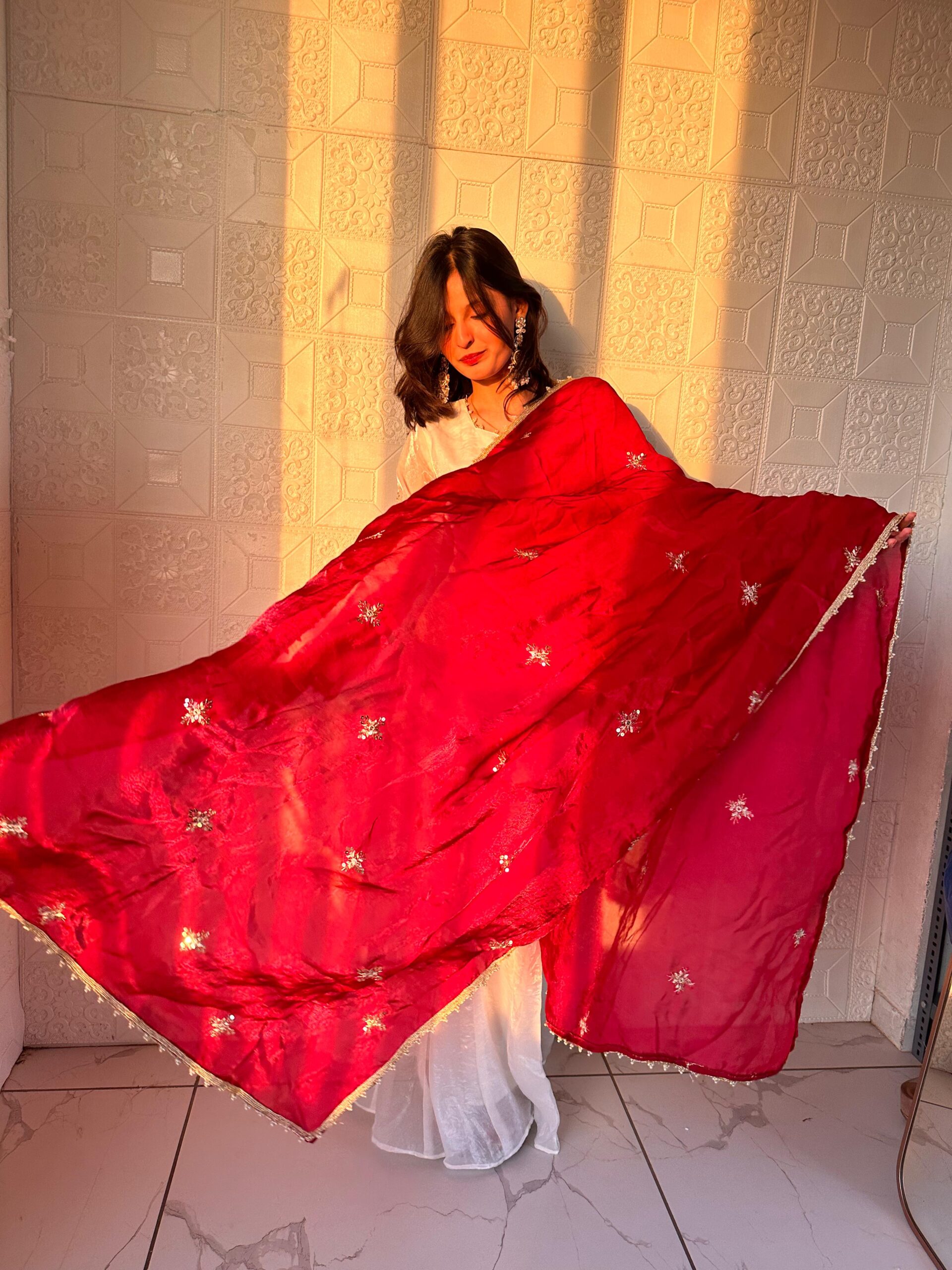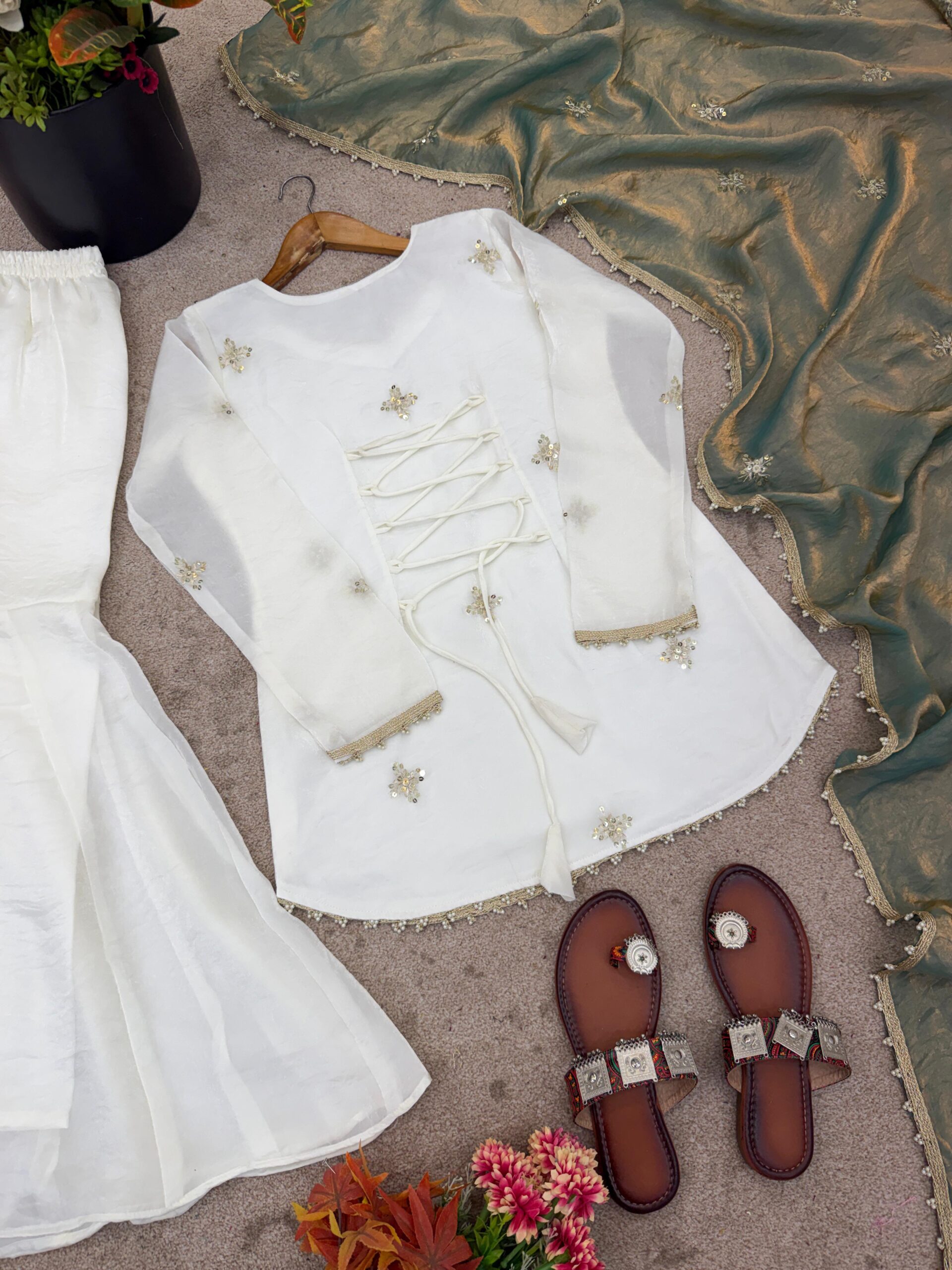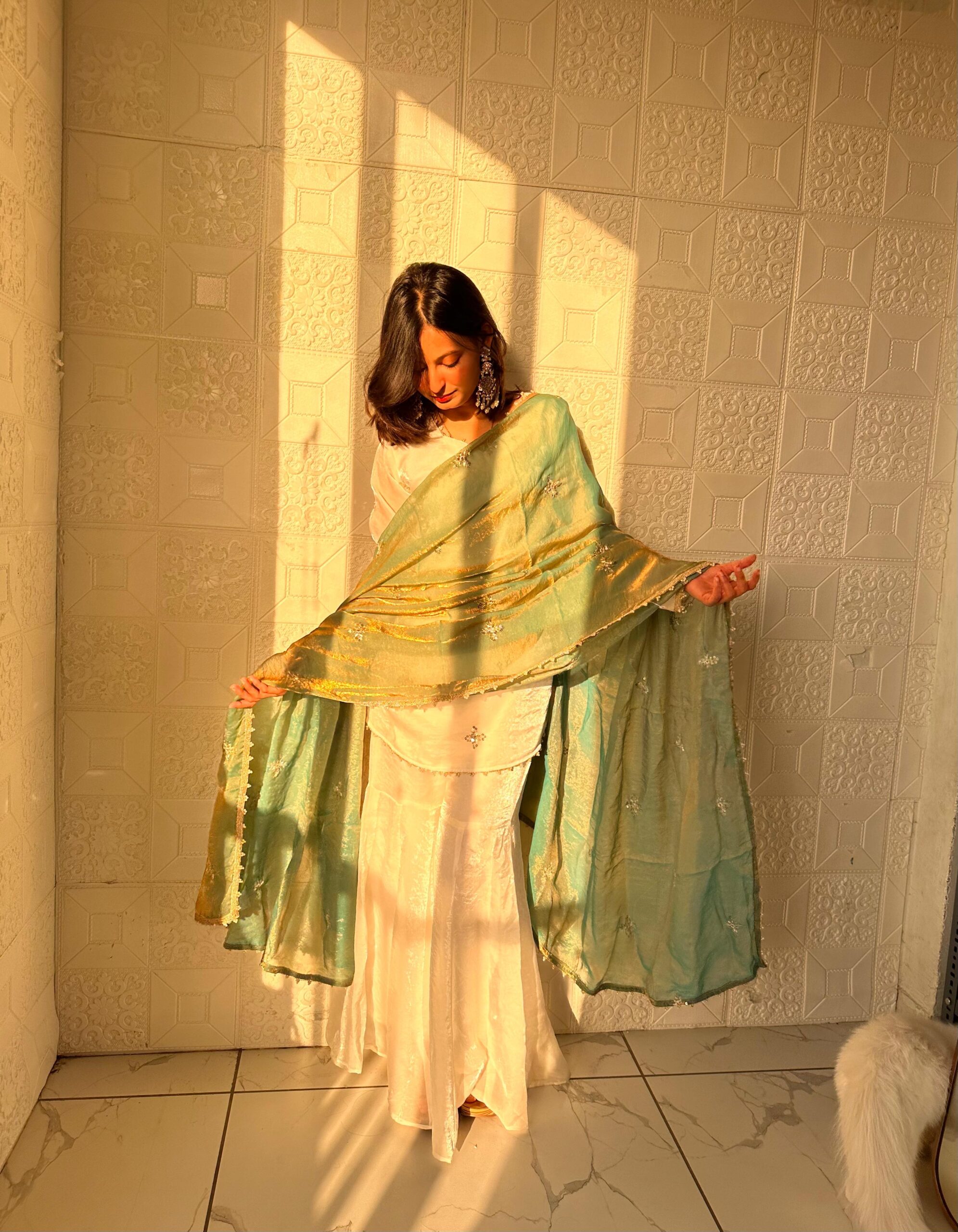 Crafted in luxurious Fendi Silk with intricate embroidery sequence work, this outfit is all about grace, glamour, and effortless style