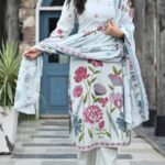 Kurti: Beautiful floral print with intricate embroidery on the neckline.