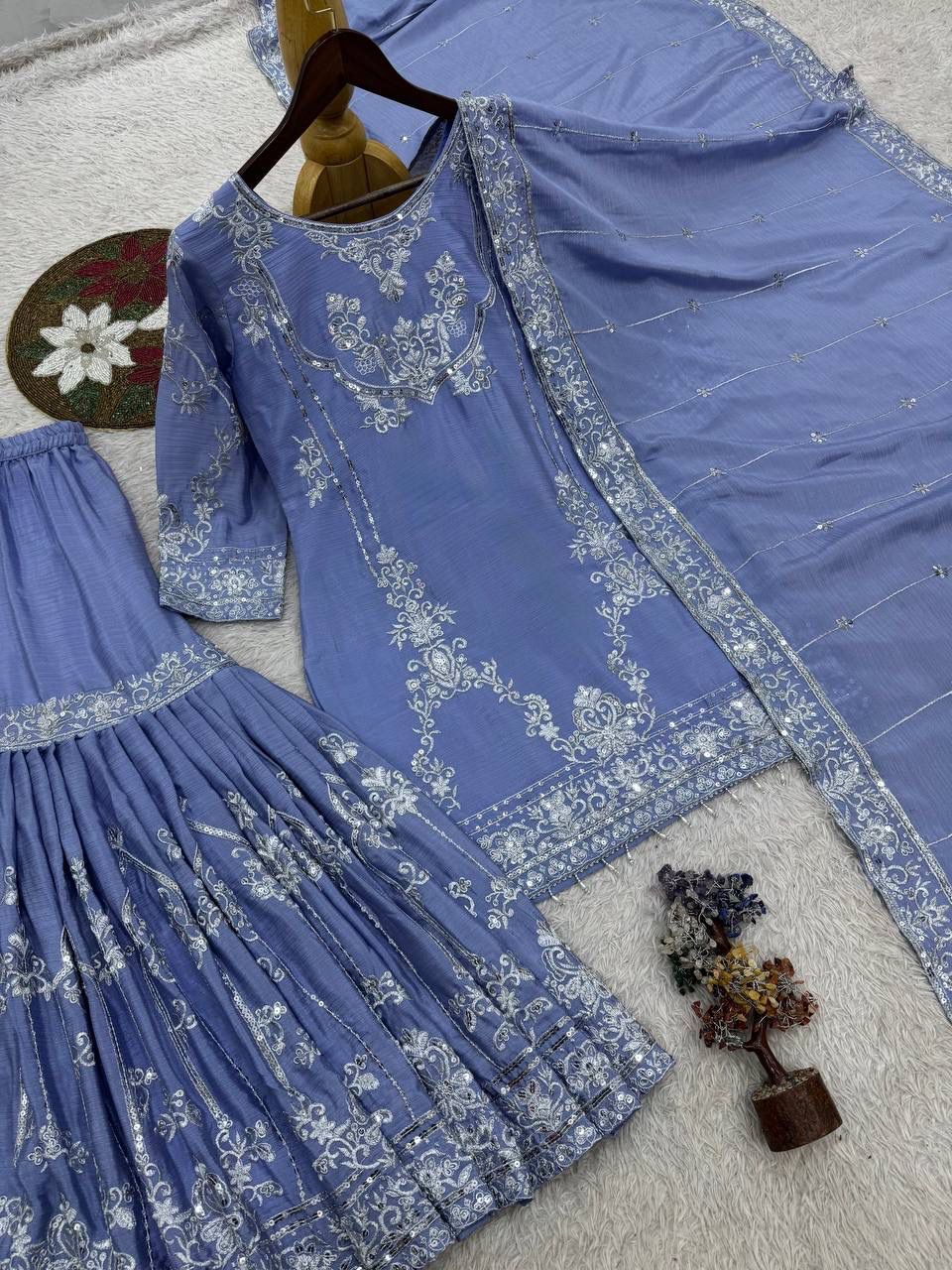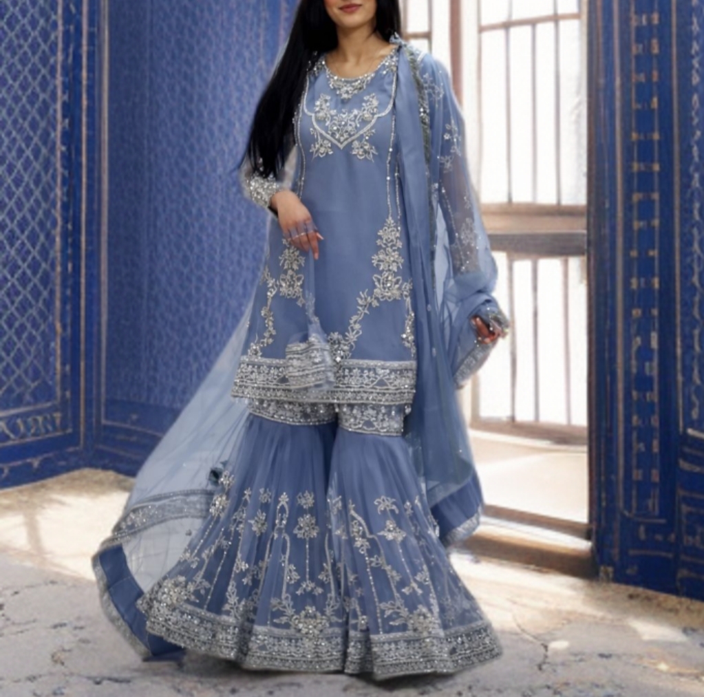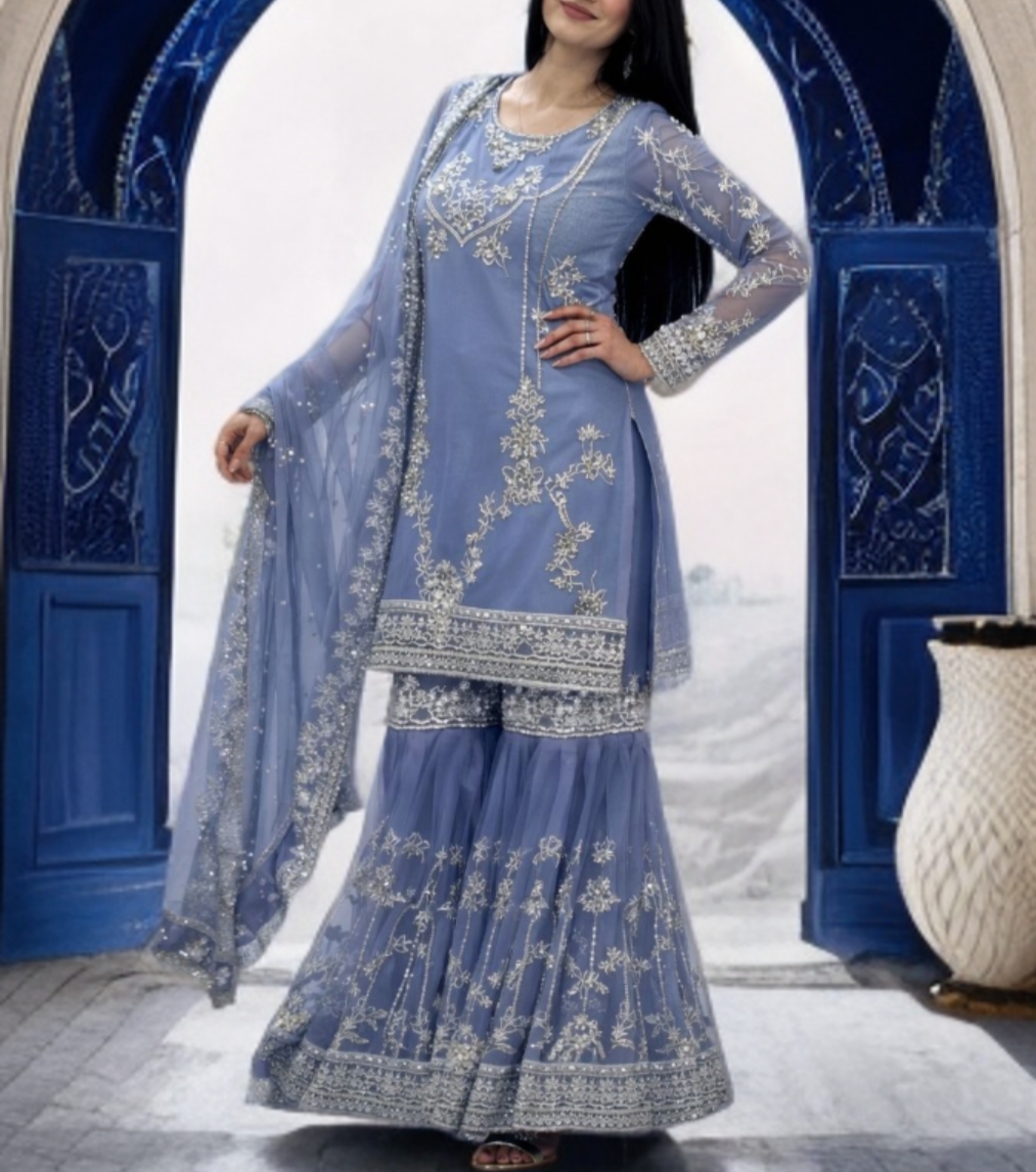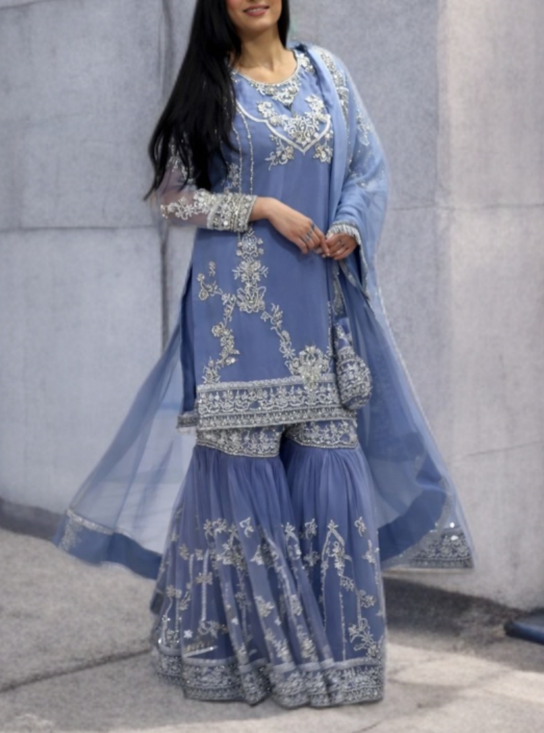 Turn every moment into a statement with this dreamy 3-piece ensemble crafted in luxe,detailed with delicate embroidery & shimmering sequence work.
