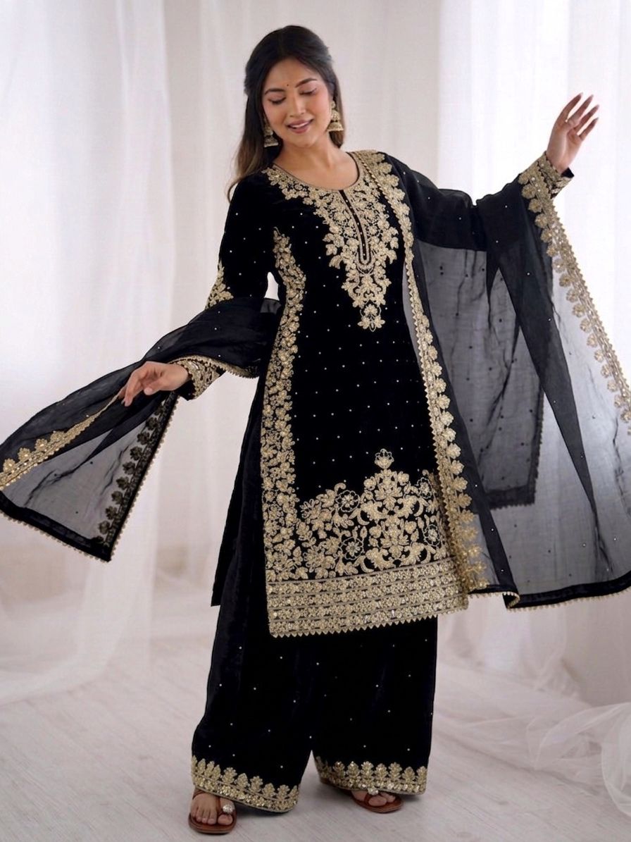 Adorned with heavy embroidery, dazzling sequence work & delicate moti detailing β€” this outfit is all about making a statement.