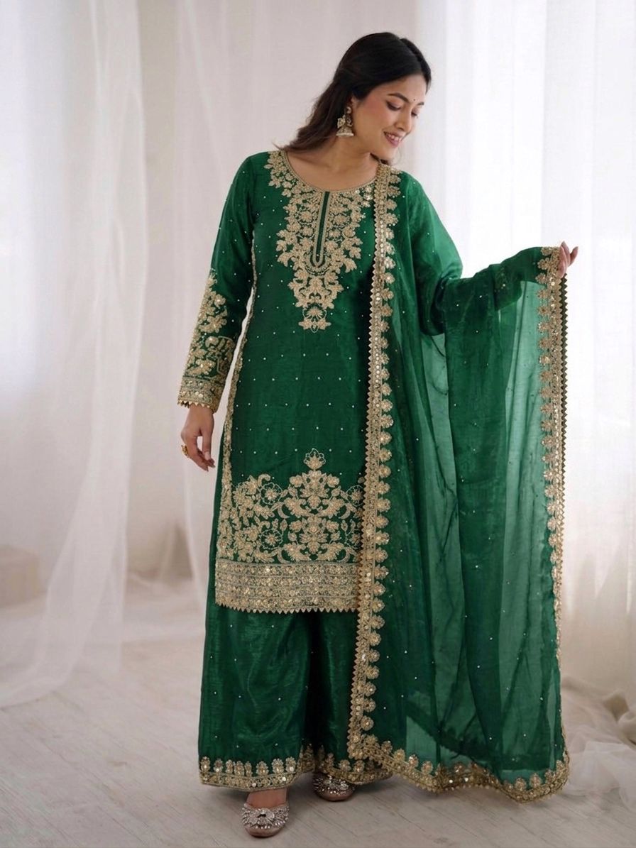 Long Kurti-Palazzo Set- Zari Embroidery