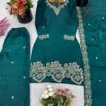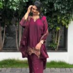 Top: Pure Jimmy Choo Silk. Heavy embroidery with sequin work. Full sleeves. Soft micro cotton inner lining for all-day comfort.