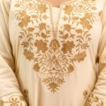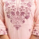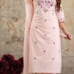 Khadi Flex Cotton Kurti featuring intricate embroidery on the neck, sleeves & hem.