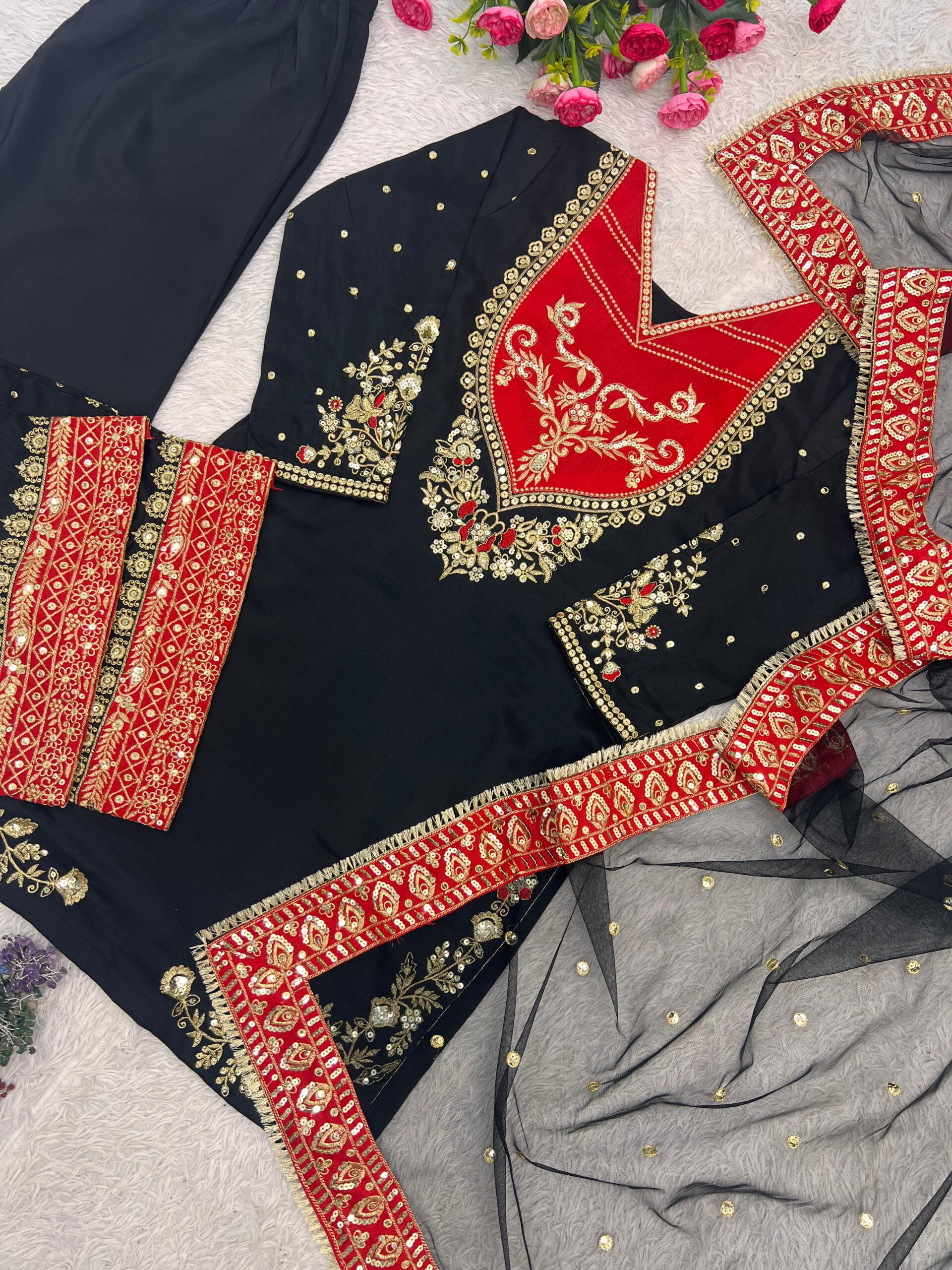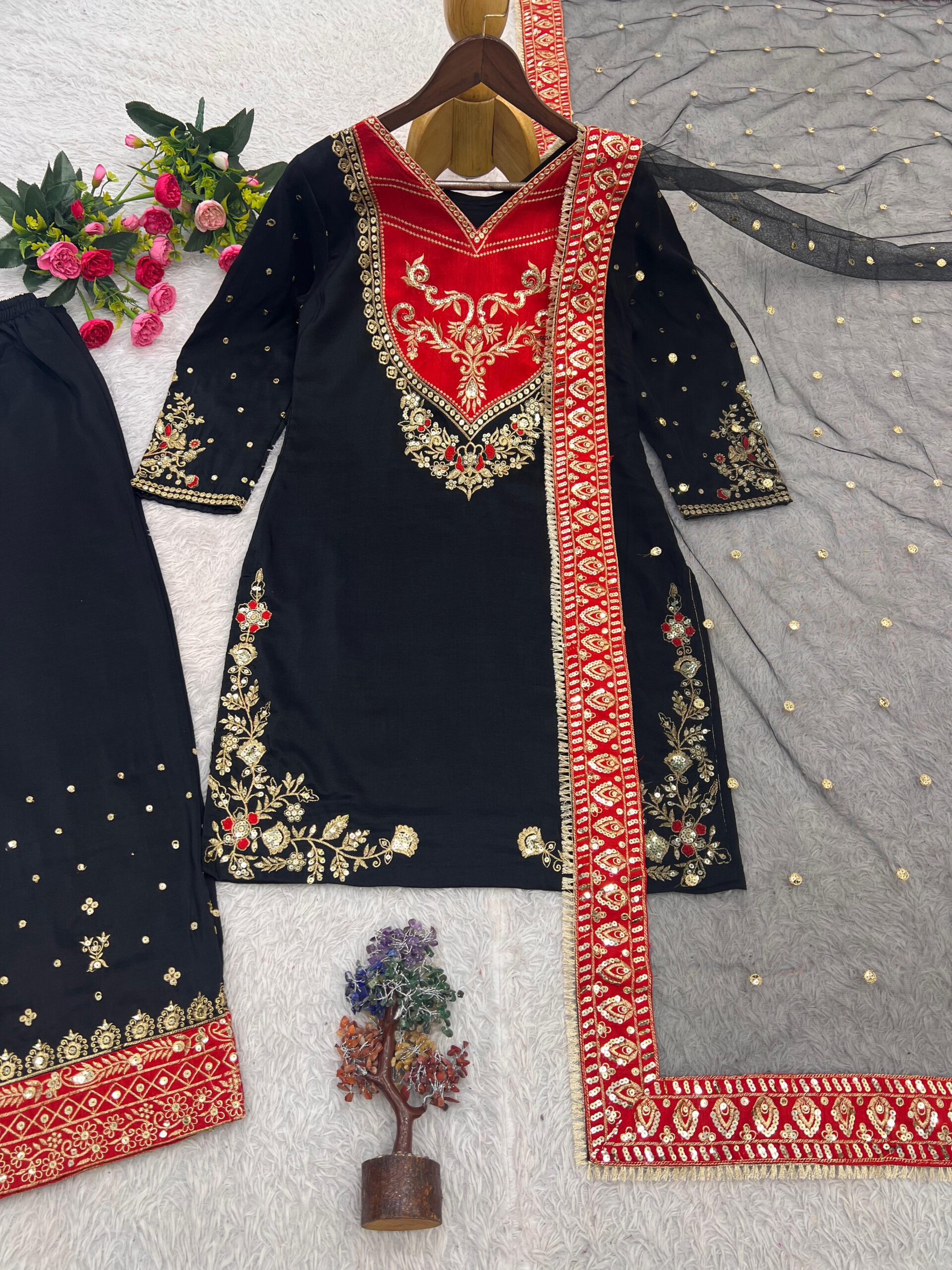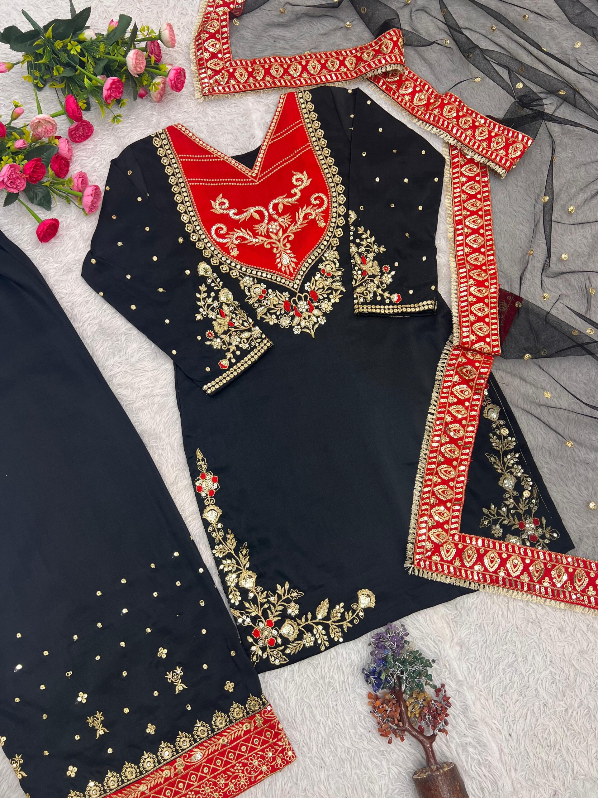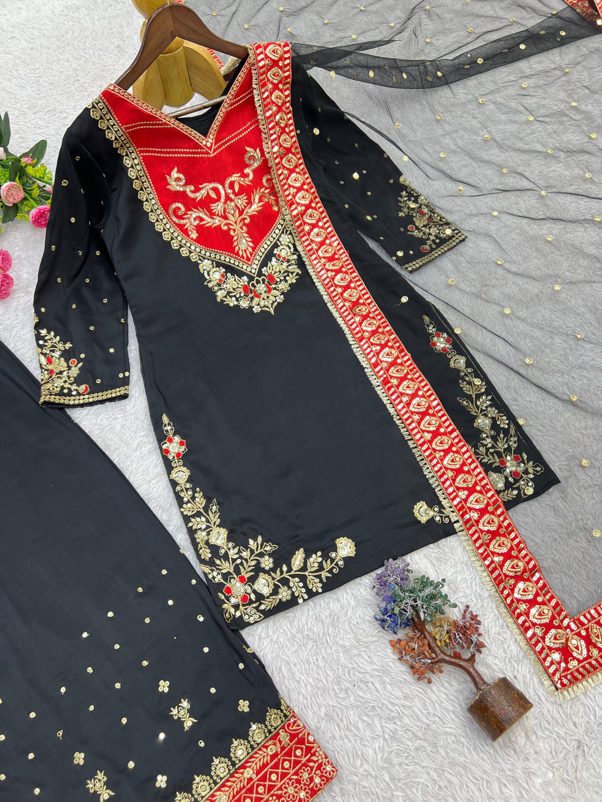 Turn heads this season with this beautifully designed Top-Palazzo & Dupatta Set, crafted for a classy yet comfortable look.