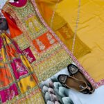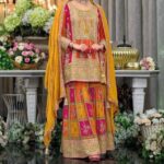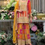 Sharara: Heavy Chinon Silk with fancy digital print and chine sequins work.