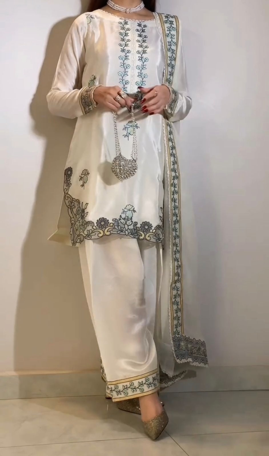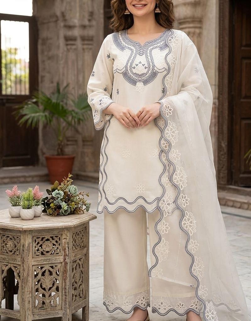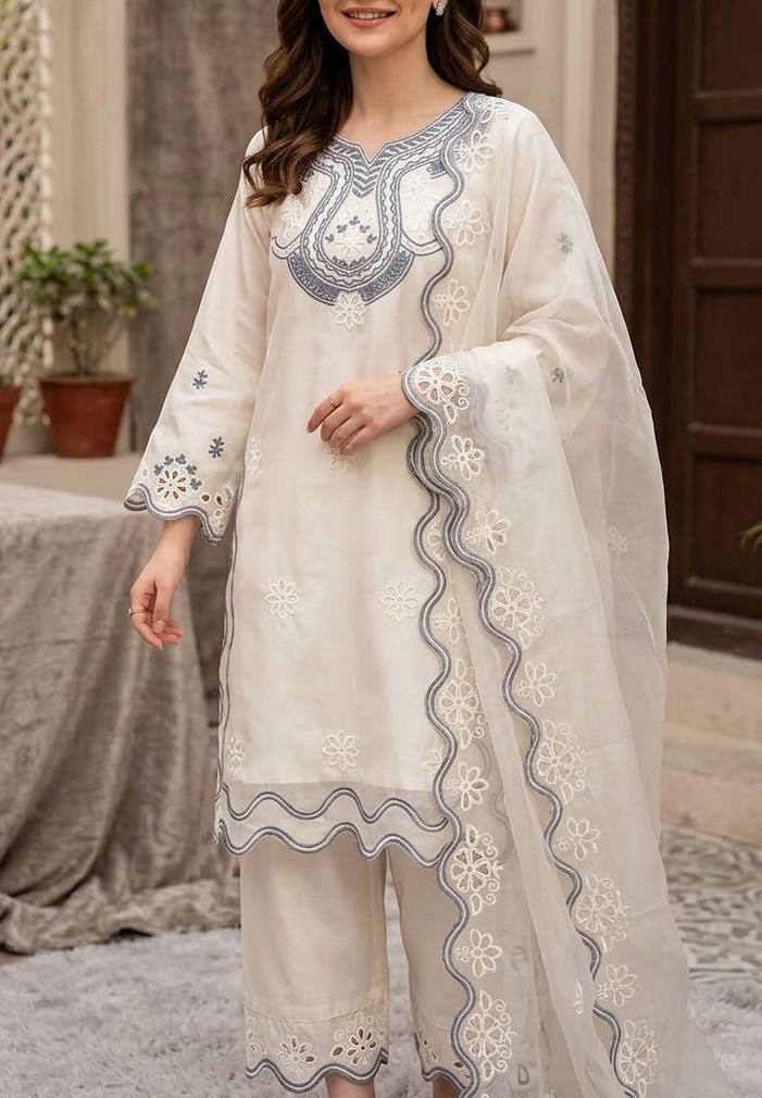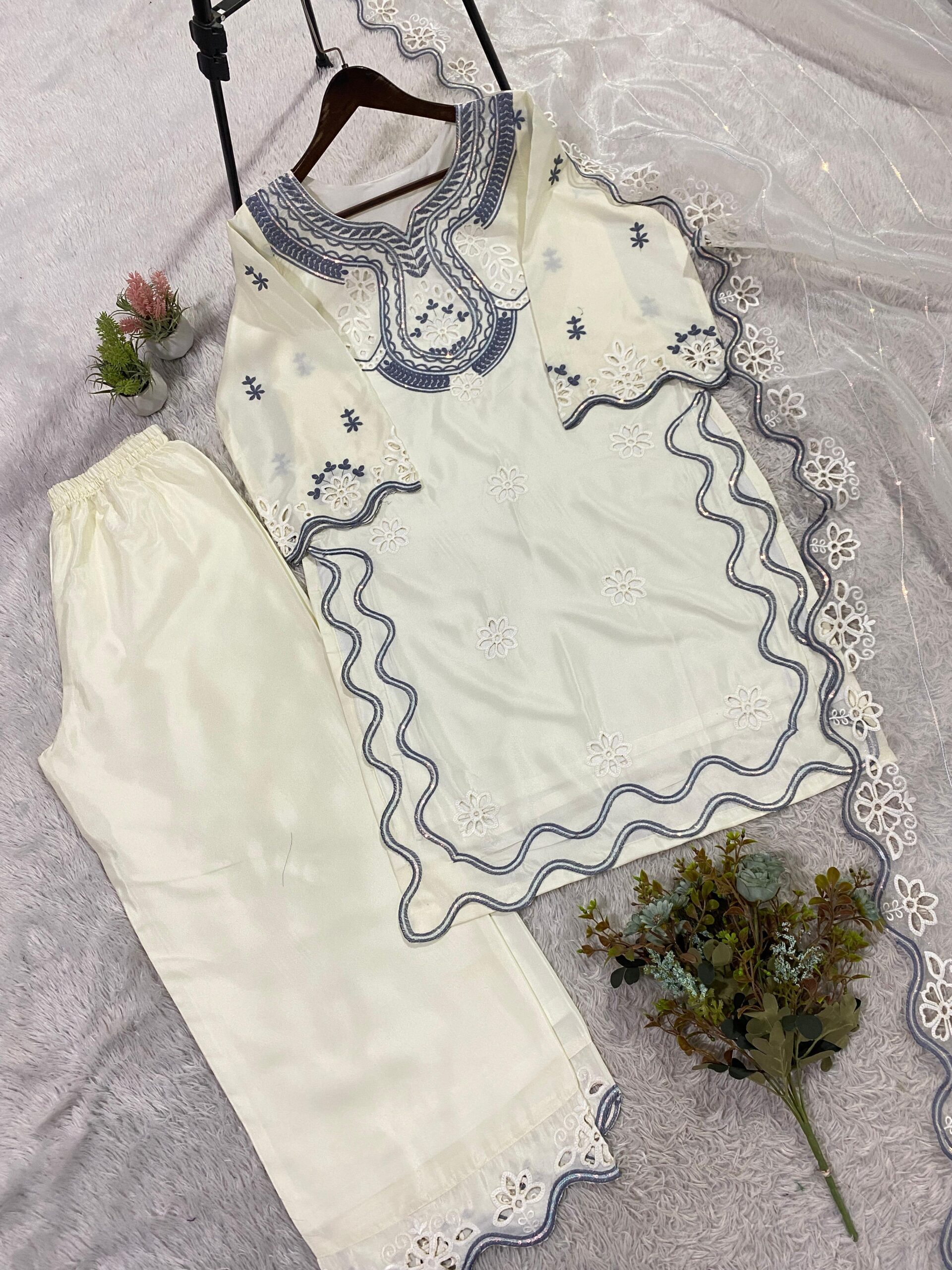 Top: Crepe Silk with delicate cut-worked sequence embroidery.