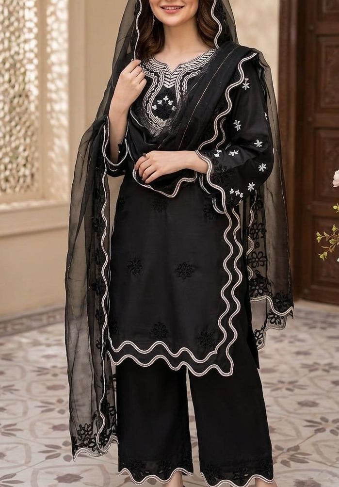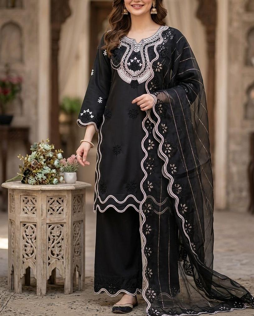 Step into the season with this stunning Pakistani suit featuring a sequence-embroidered work.