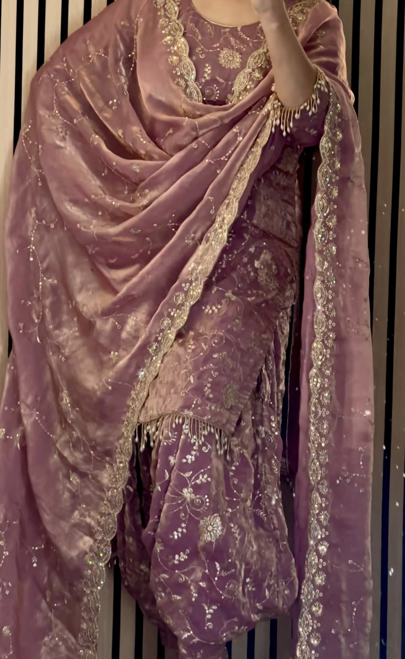 A stunning Pure Frendy Silk Dupatta with sequence work and lace border completes the look.