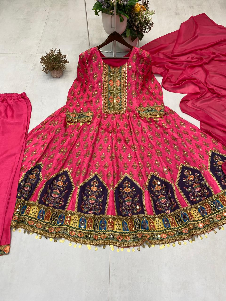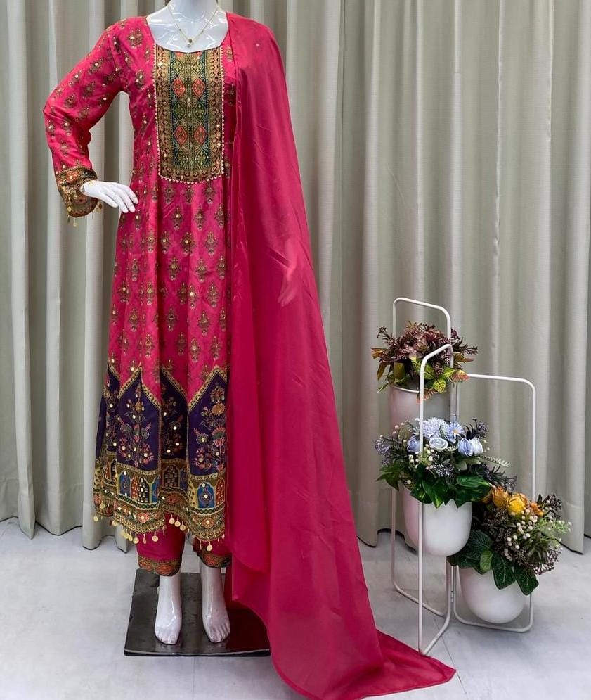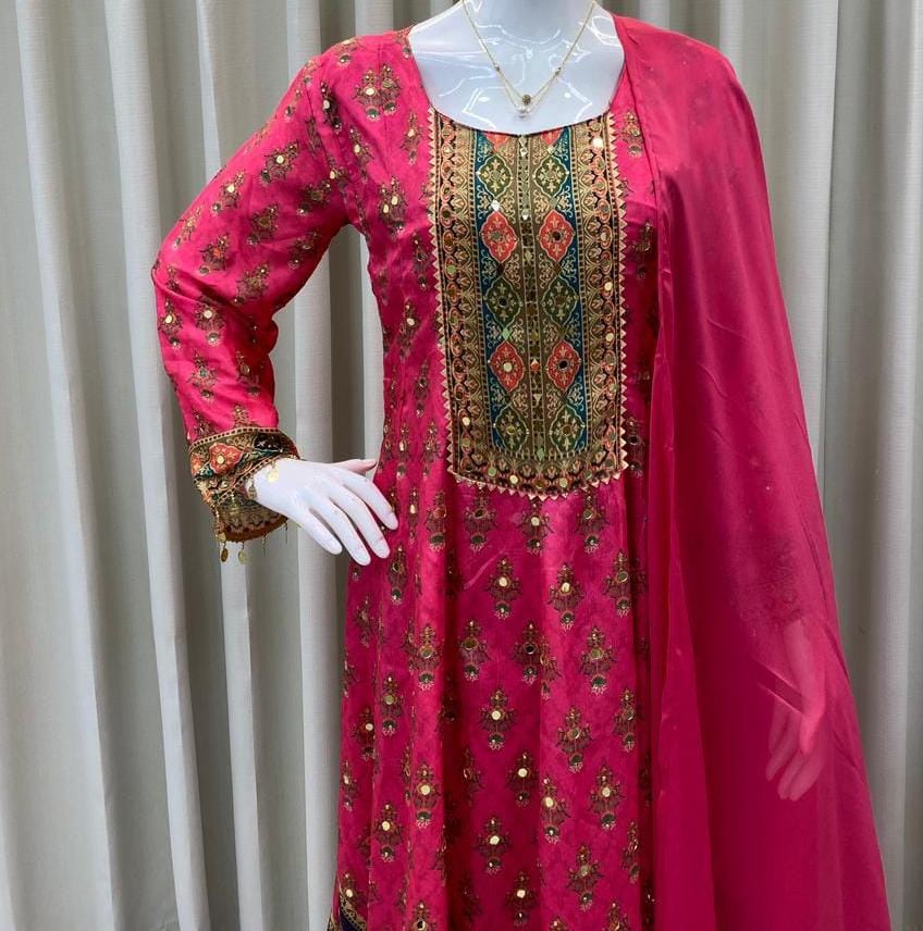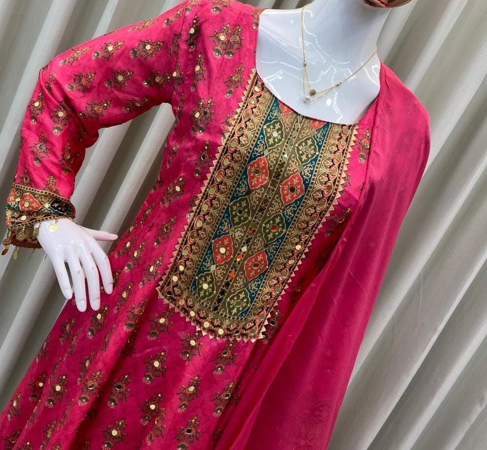 Printed Top with Pant – Real Mirror work