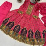 Work: Printed design with real mirror work and beautiful lace detailing.