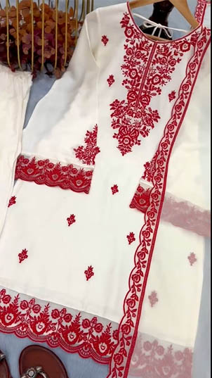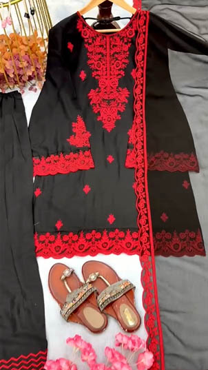 Step into elegance with our Designer Party Wear Rayon Cotton Top & Farshi Palazzo Set with Dupatta. Crafted with delicate embroidery, stylish bell sleeves, and graceful cutwork details, this outfit blends comfort with a luxurious boutique look.
