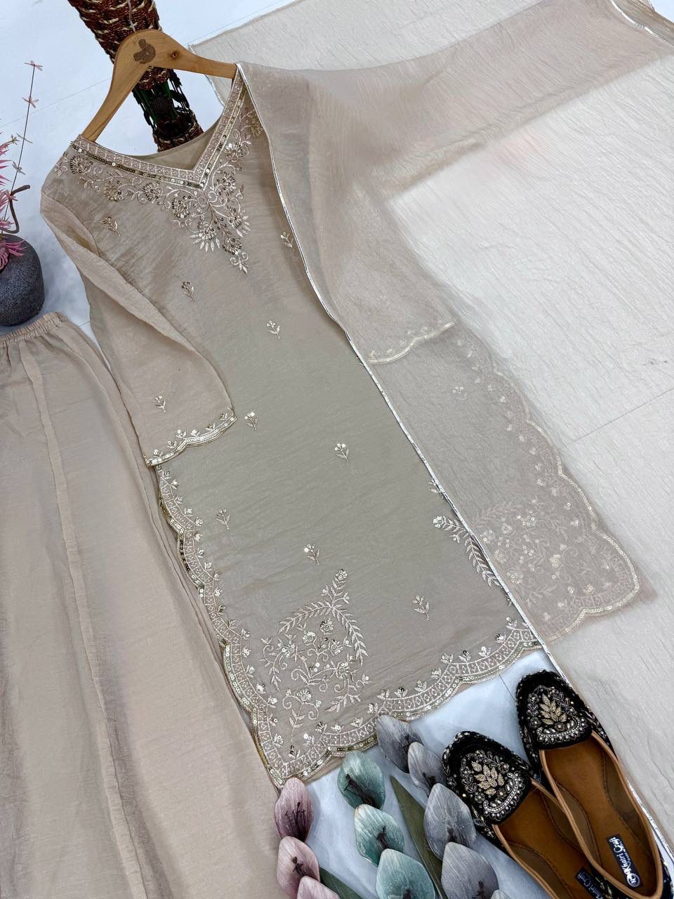 Elegant partywear in Heavy Tissue Silk — perfect for festive celebrations.