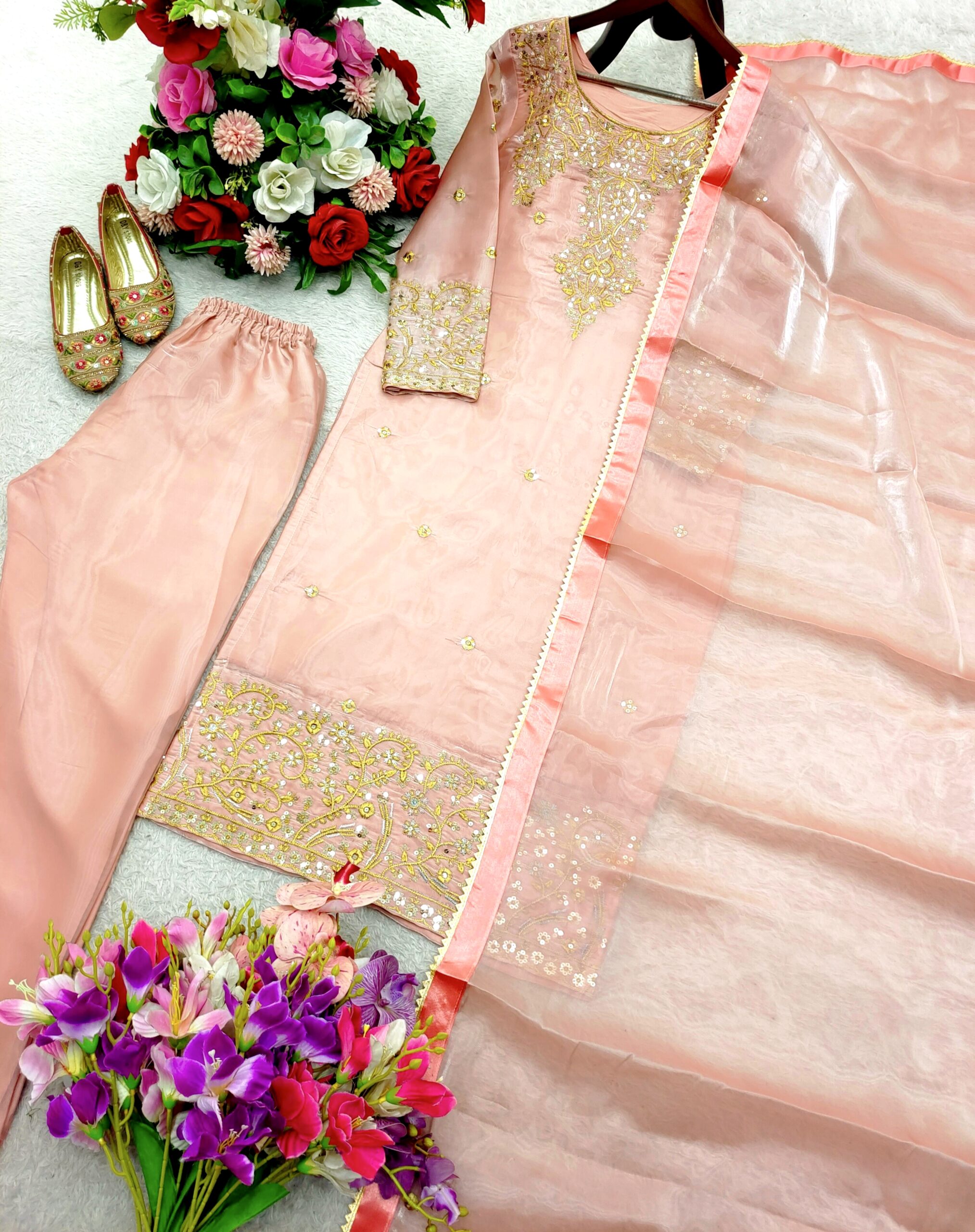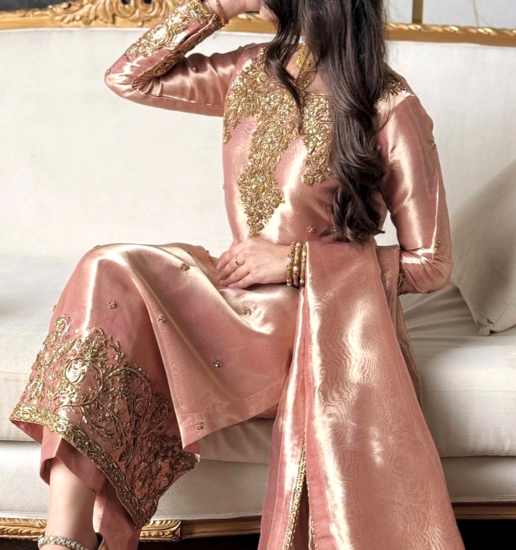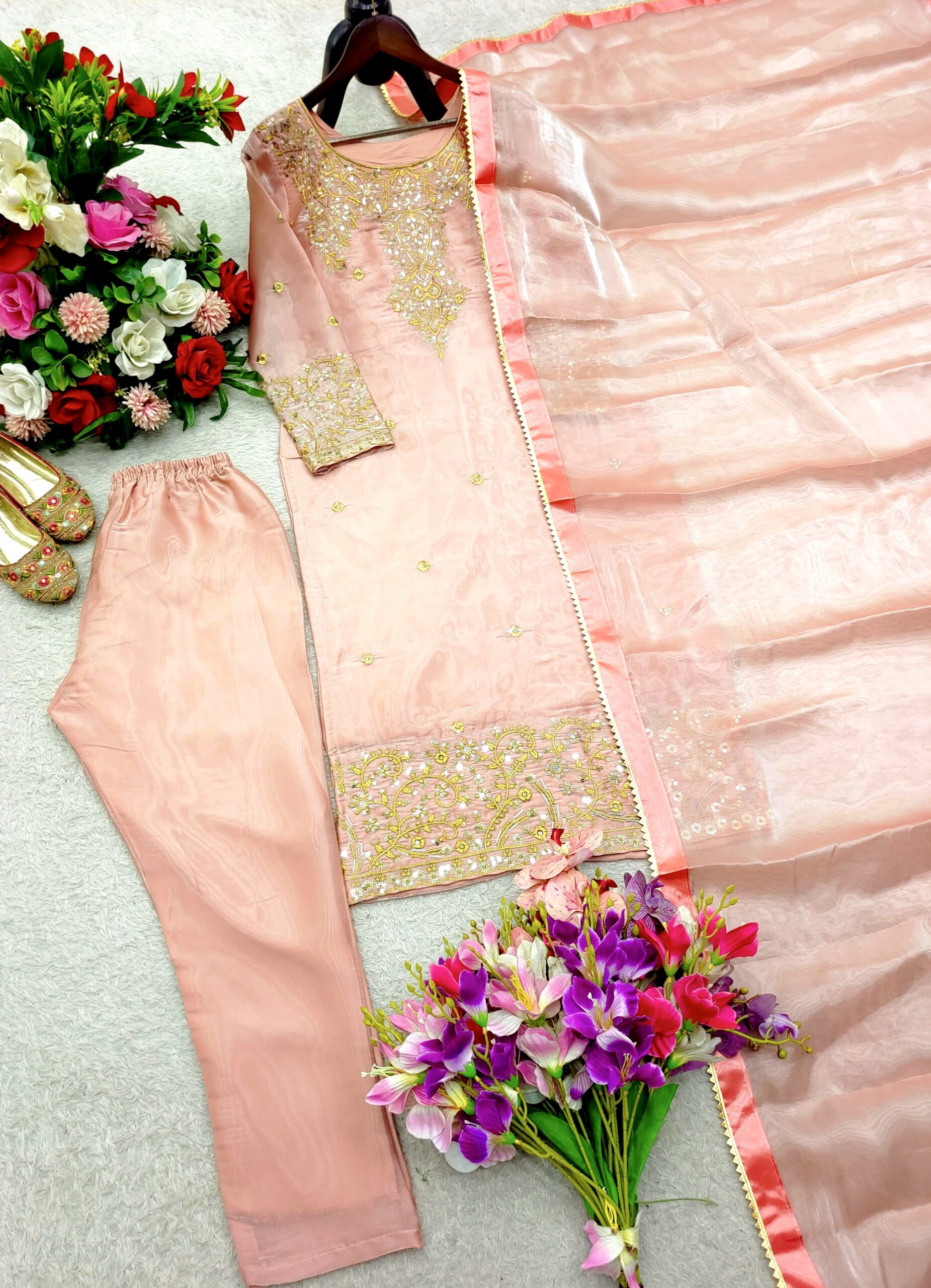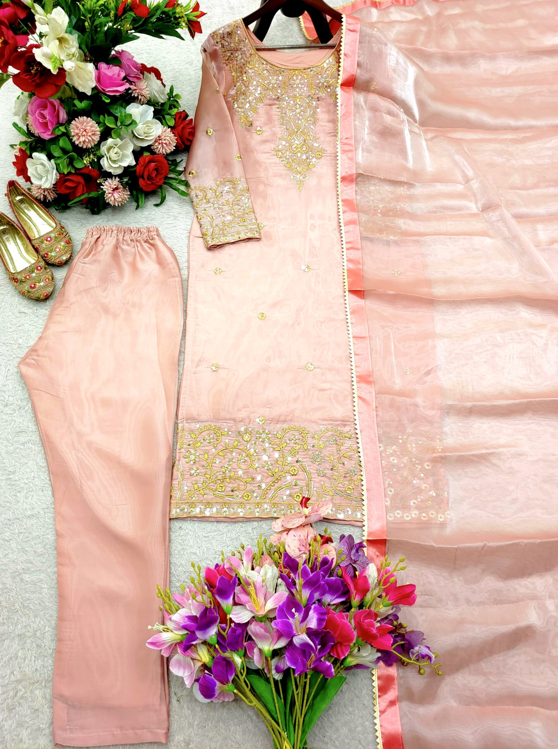 Turn heads this festive and wedding season with our premium sequence embroidery worked TopโPantโDupatta set, crafted in luxurious Jimmy Choo fabric for a rich and graceful look.