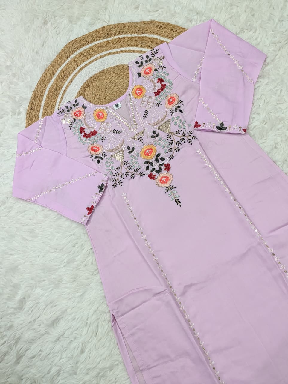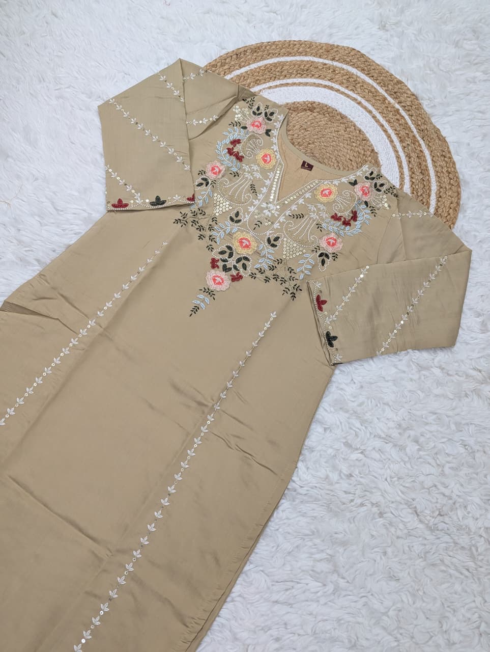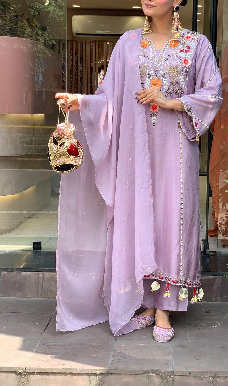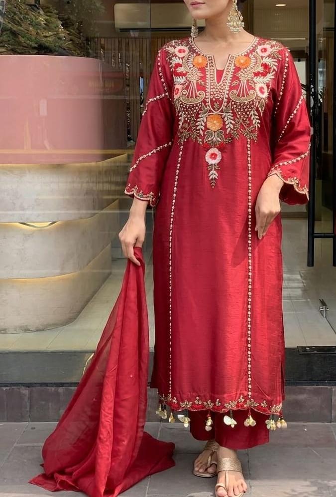 Step into timeless beauty with this stunning Pure Viscose Chanderi Silk Kurta Set, beautifully adorned with intricate sequence coding embroidery work that adds the perfect festive sparkle.