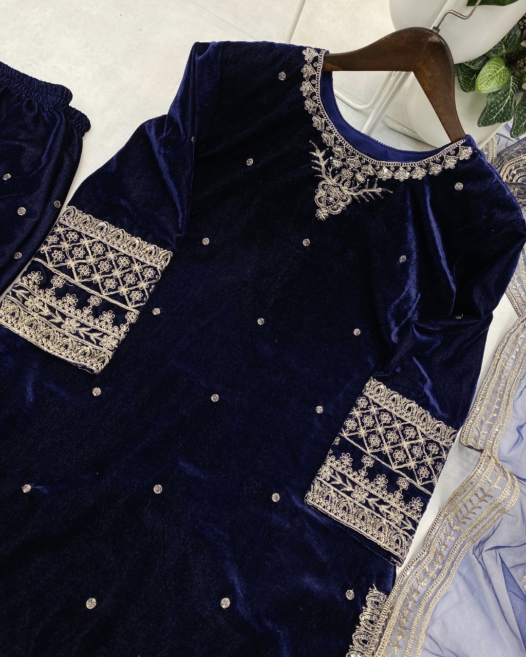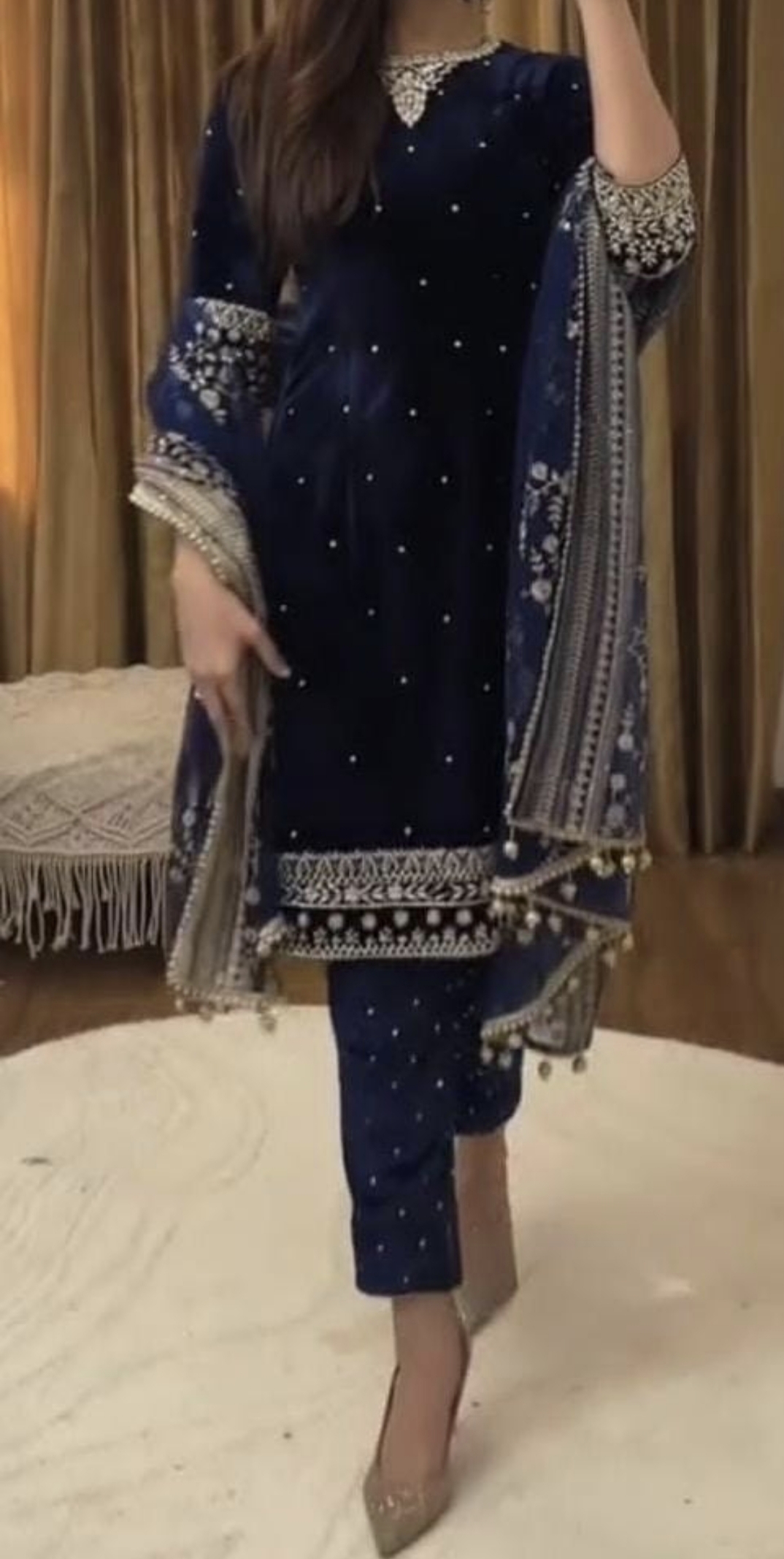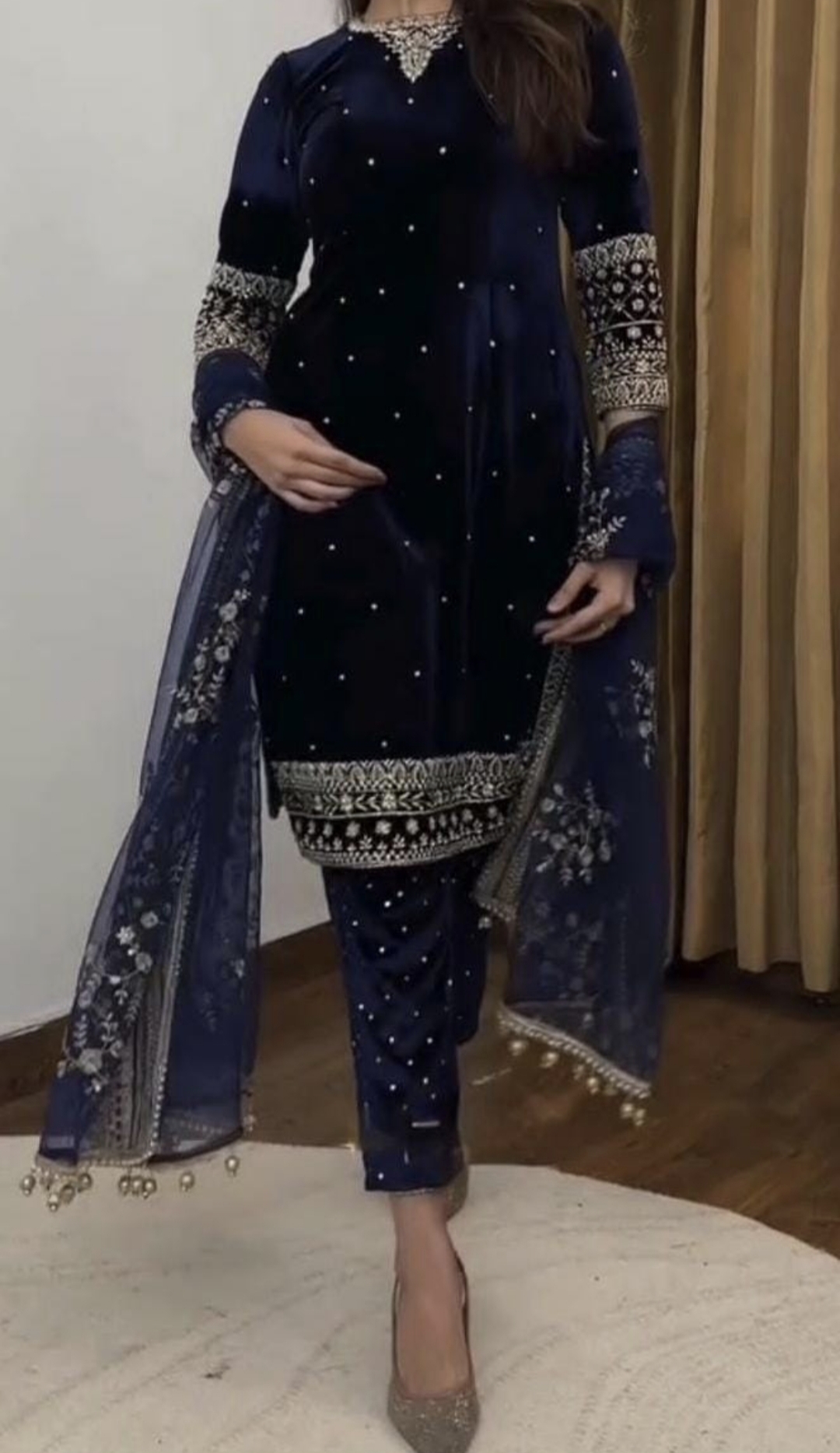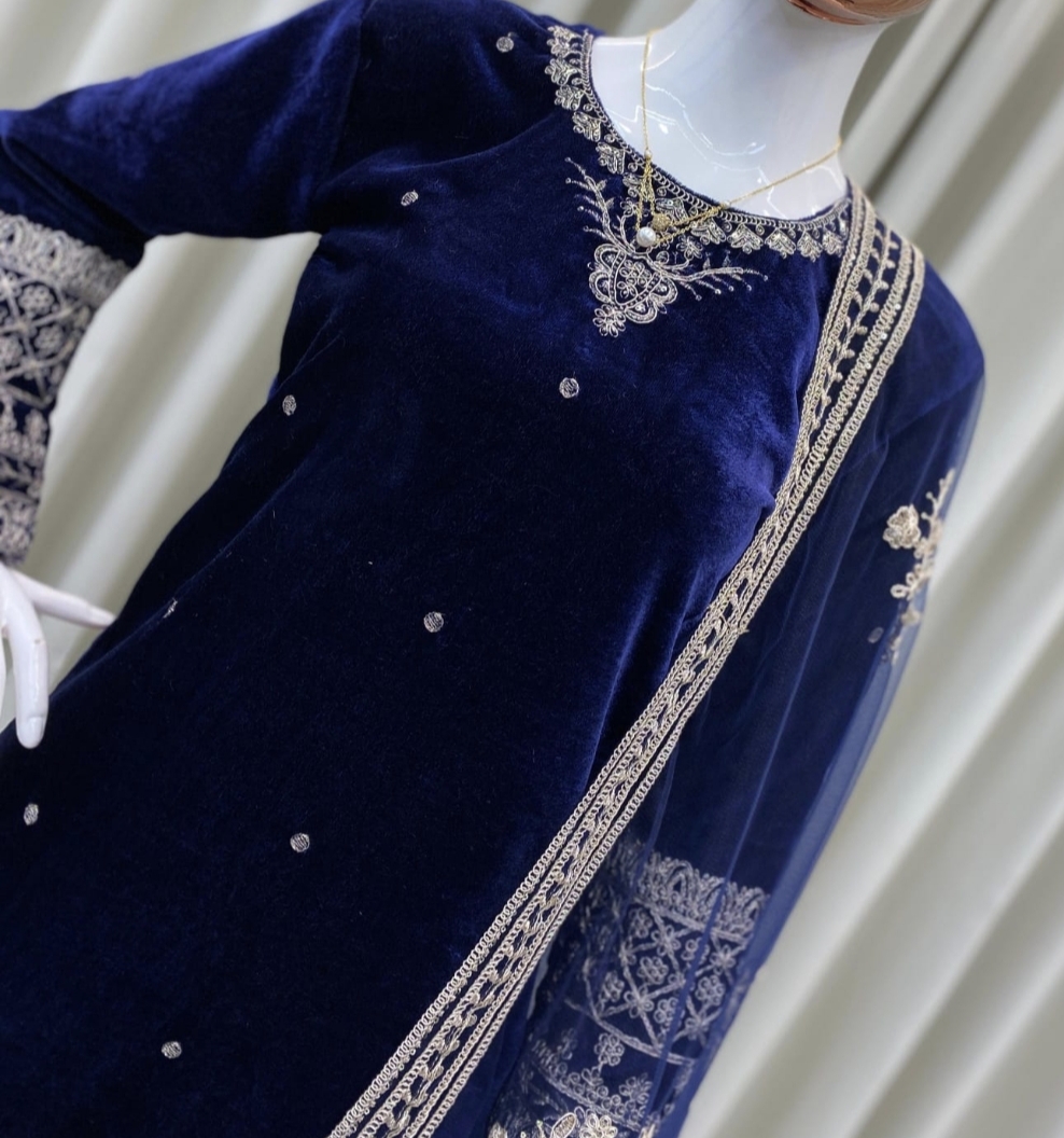 Work: Heavy Sequence Embroidery with stylish Lace Border.