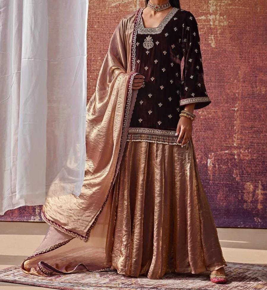 A timeless festive piece combining velvet elegance with intricate embroidery — perfect for weddings, parties, and celebrations!