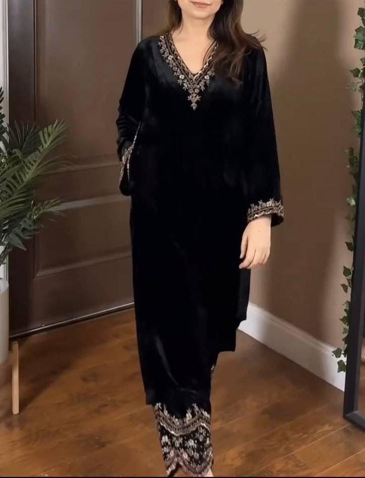 Velvet Suit Set with Sequence Embroidery Work