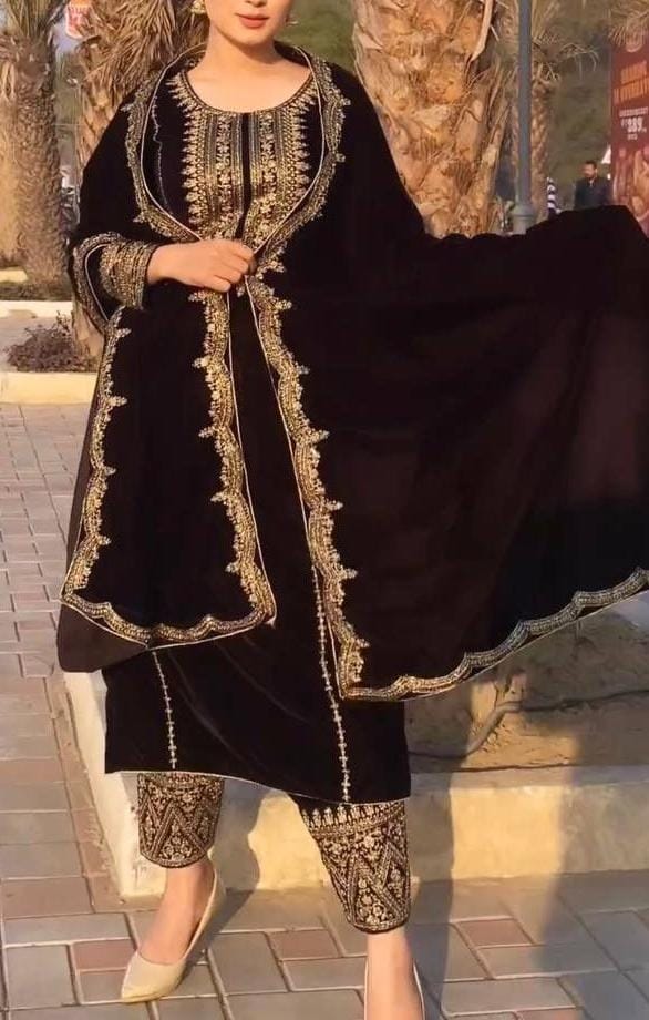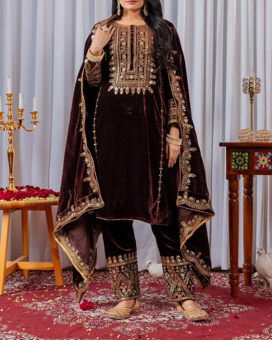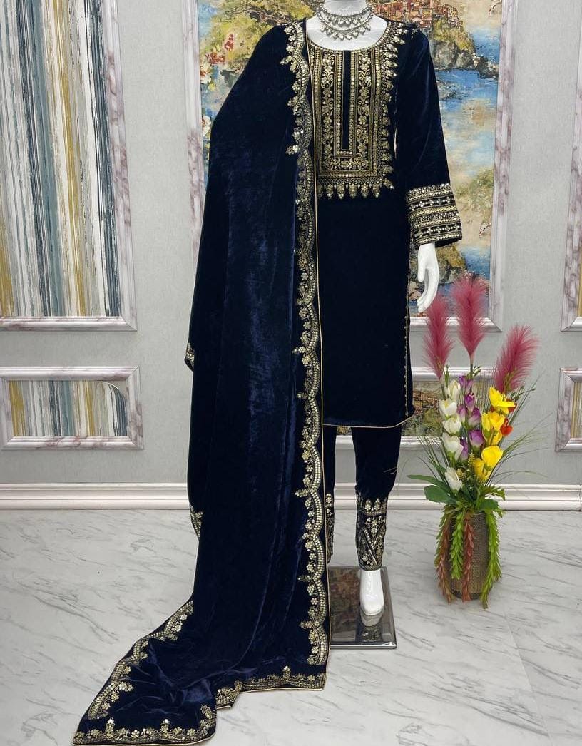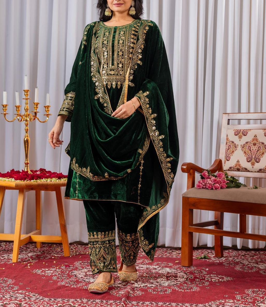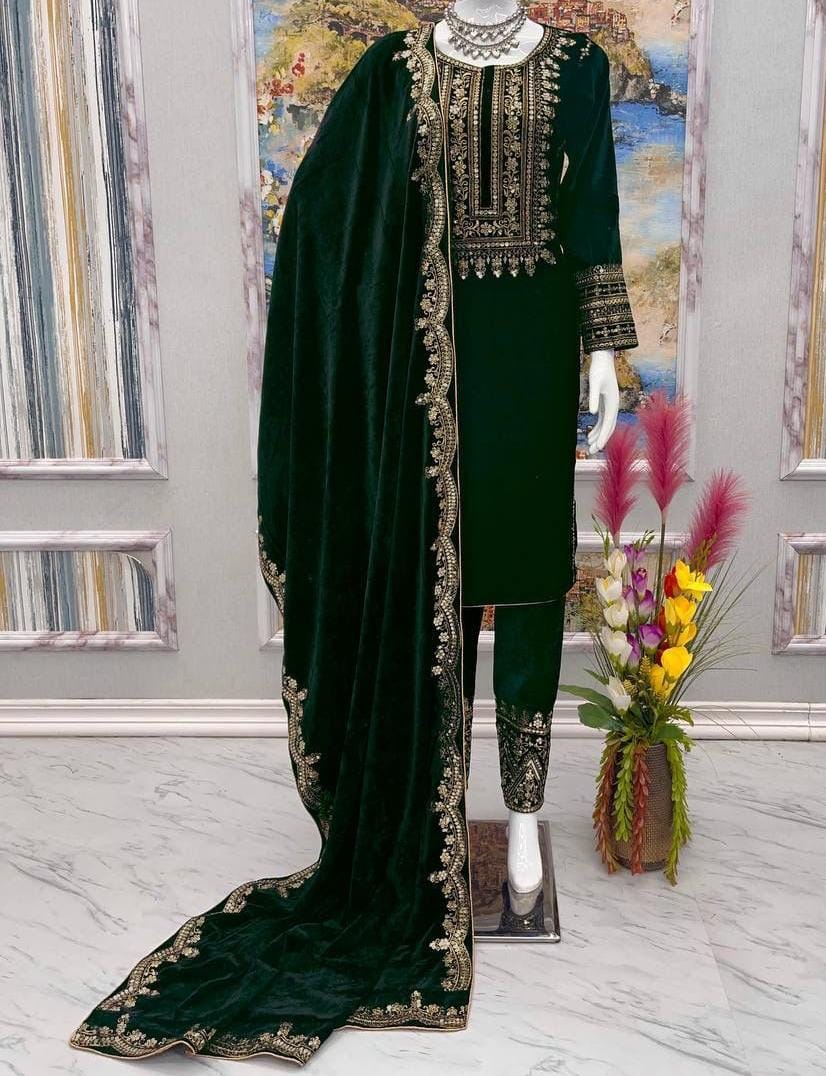 Heavy Viscose Velvet Top, Bottom & Dupatta Set