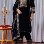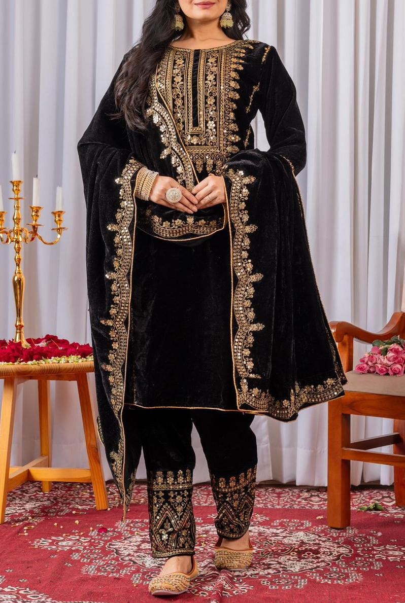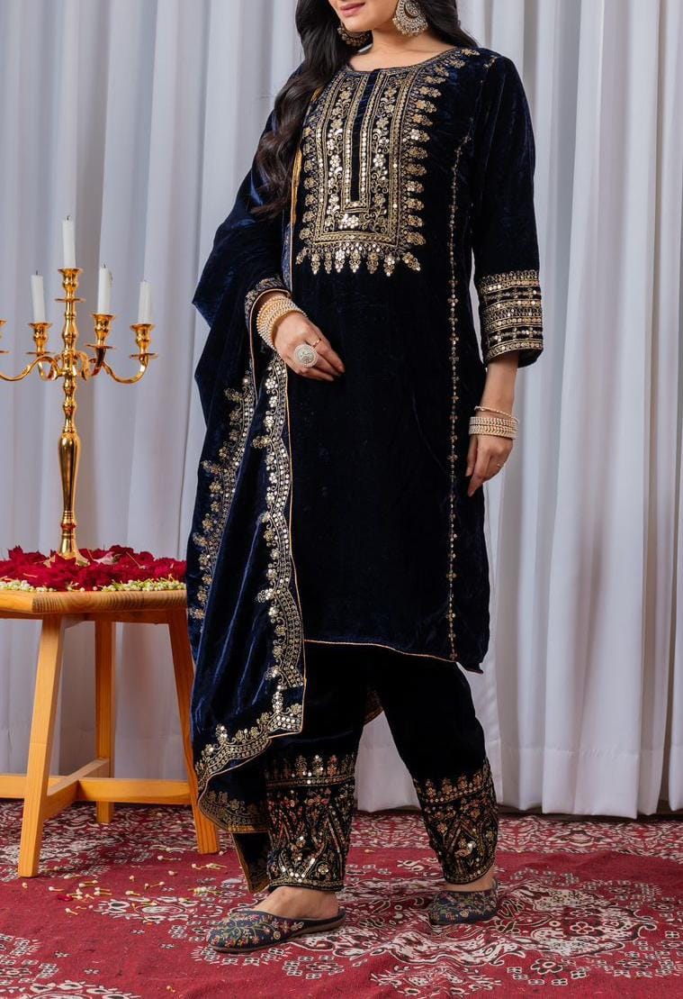 Velvet Suit Set with Sequence Embroidery Work