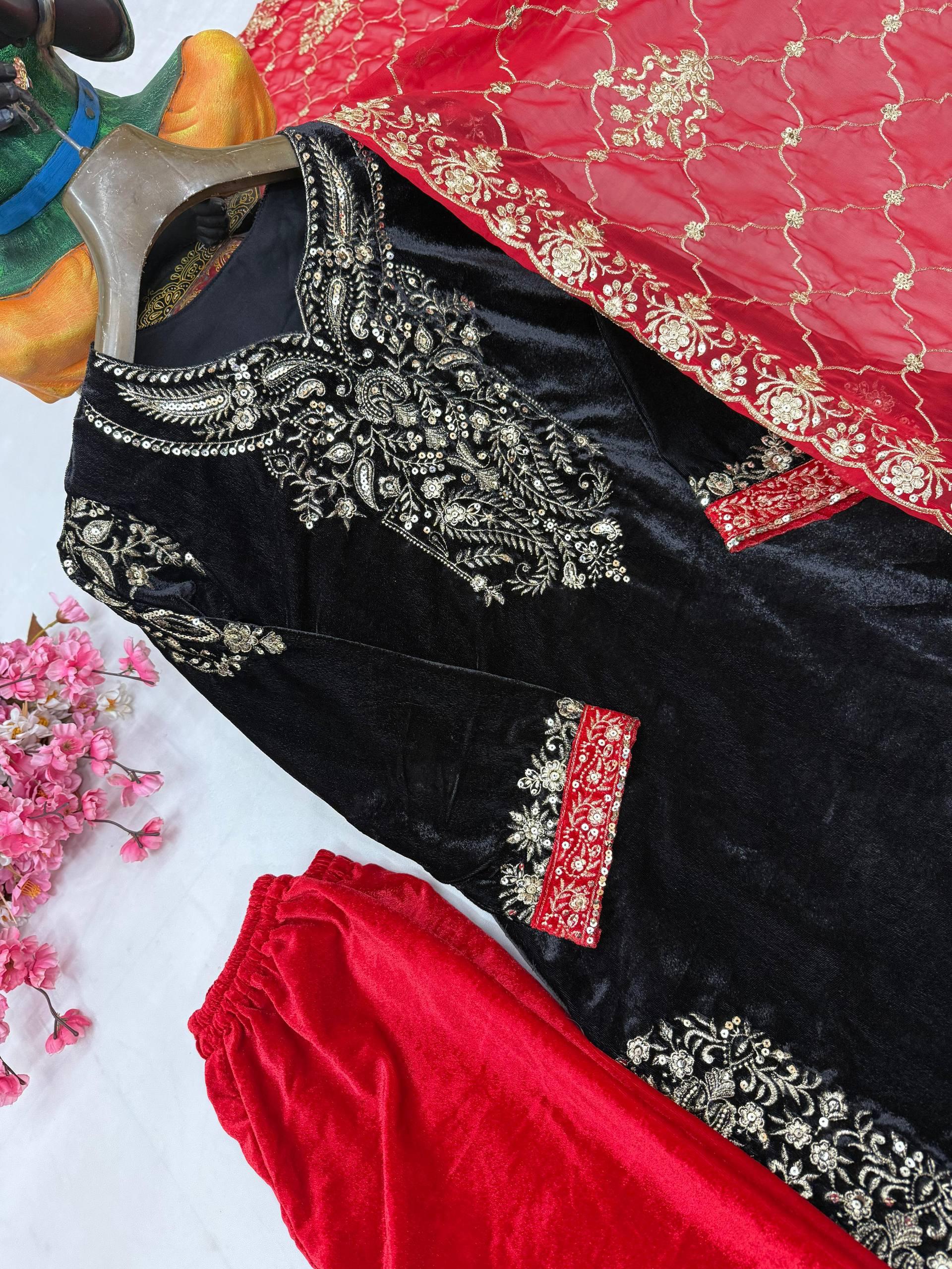 New Velvet Kurti Palazzo Set