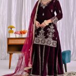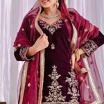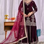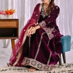 Pure heavy viscous velvet with rich multi-needle sequin embroidery work (Full Sleeves).