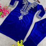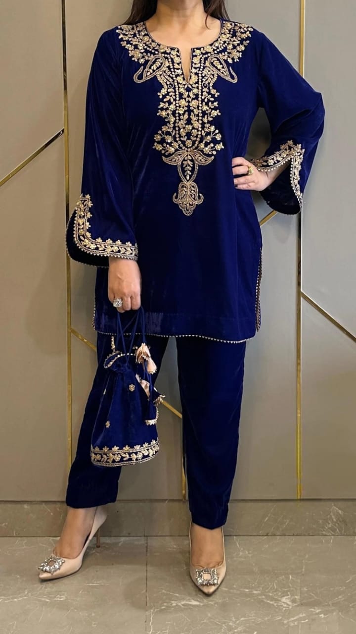 Make this stunning Velvet Set a part of your wardrobe this season! Perfect for weddings, festive gatherings, and winter occasions, this outfit blends timeless charm with cozy luxury. The intricate detailed embroidery adds a touch of sophistication, making it truly unique and special.