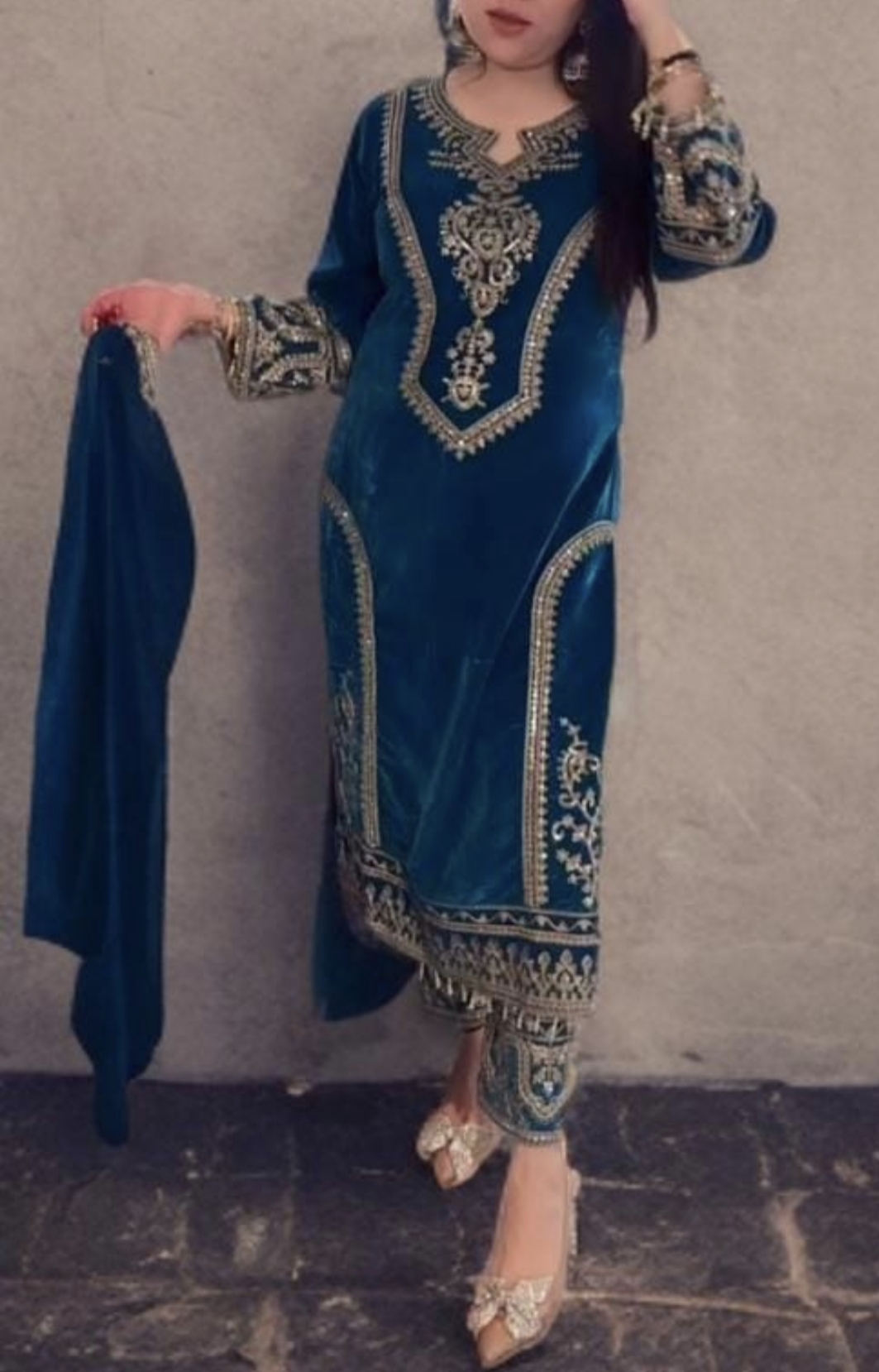 Heavy Viscose Velvet Top, Bottom & Dupatta Set