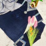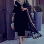Heavy Pure Viscose Velvet with elegant embroidery and 5mm sequin work, featuring stylish fancy bell sleeves